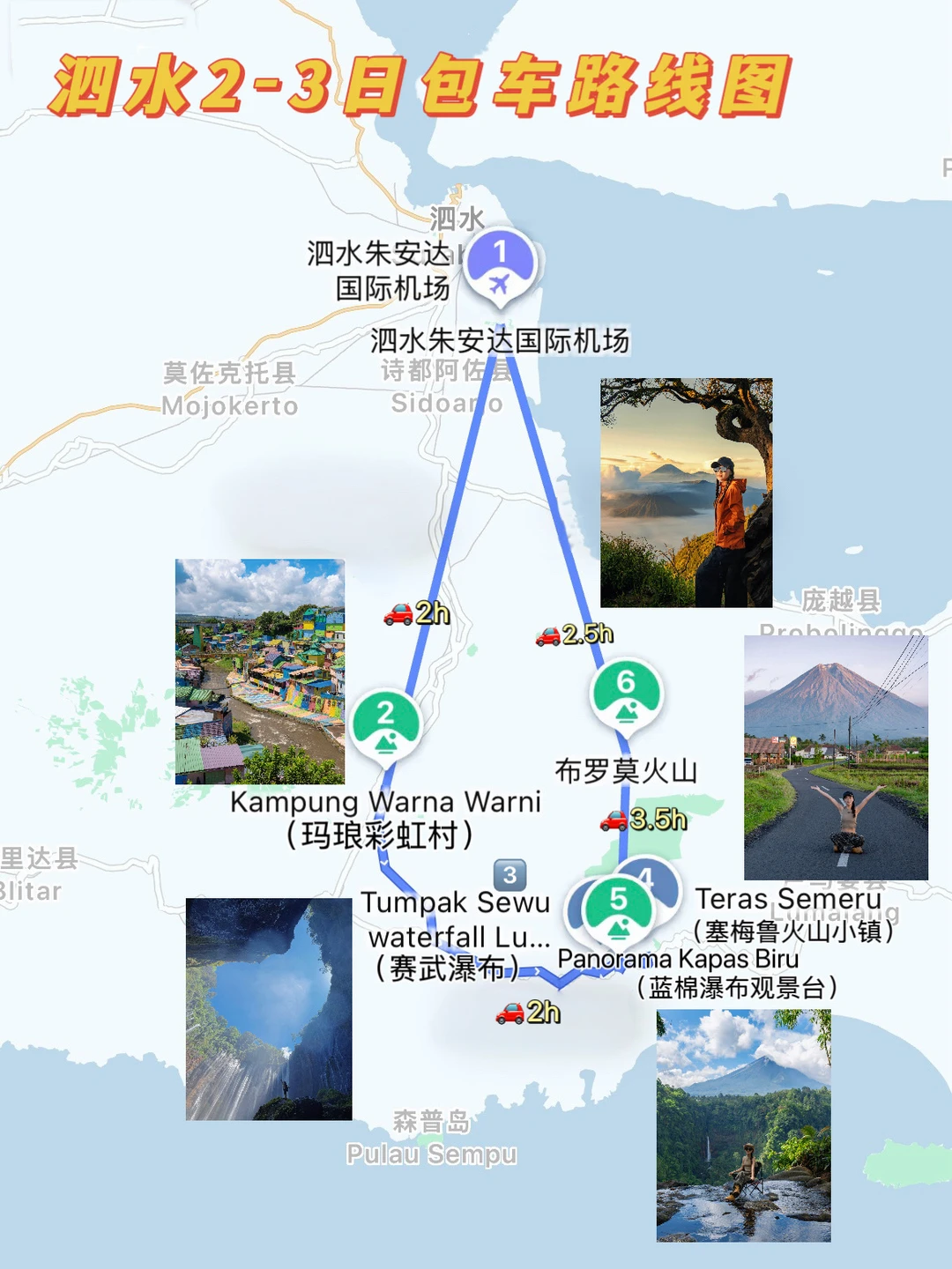 6️⃣从泗水机场出发,沿途可顺路打卡玛琅彩虹村