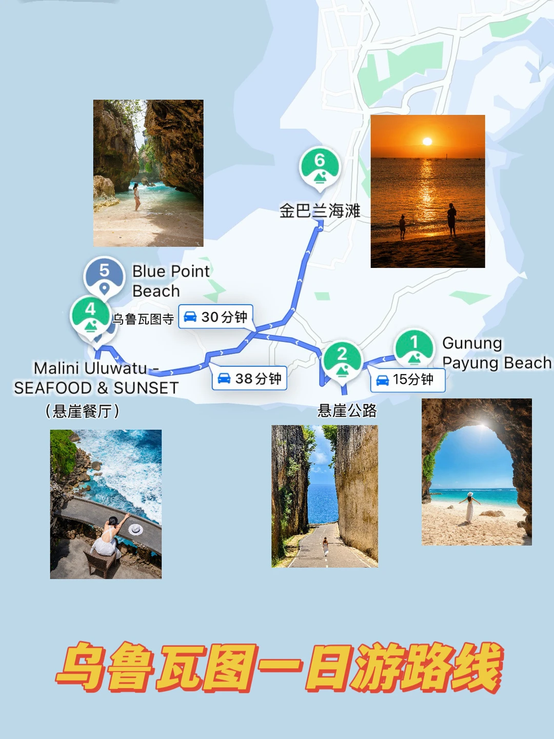 2️⃣巴厘岛很大,如果只有1天时间,闭眼选乌鲁瓦图,这是最方便的看海路线,半天就能走完,拍照也很出片!