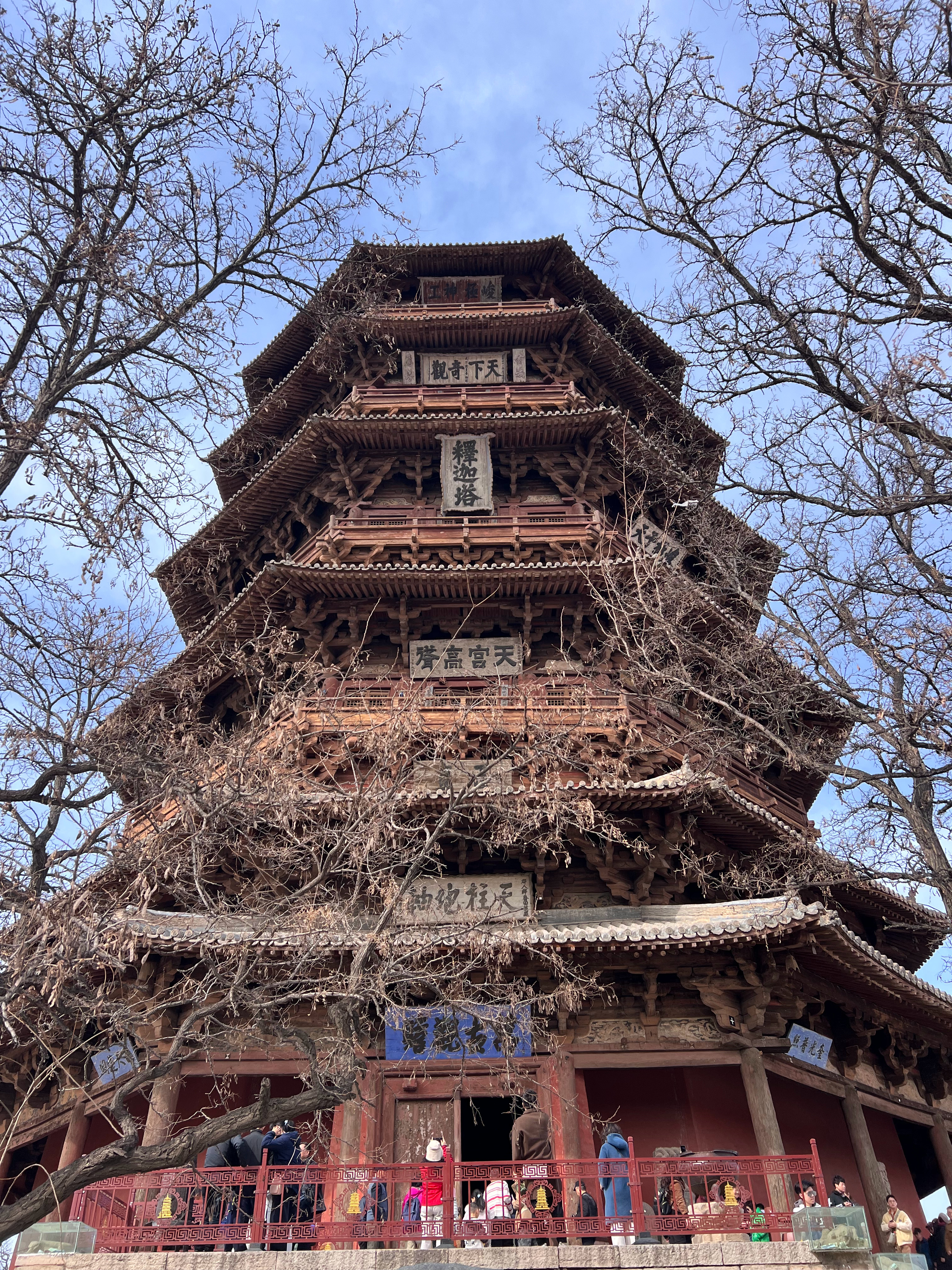 和鱼儿妈在应县木塔下坐了一个小时,就这么静静的仰头看着,边听着手机里的讲解,边用