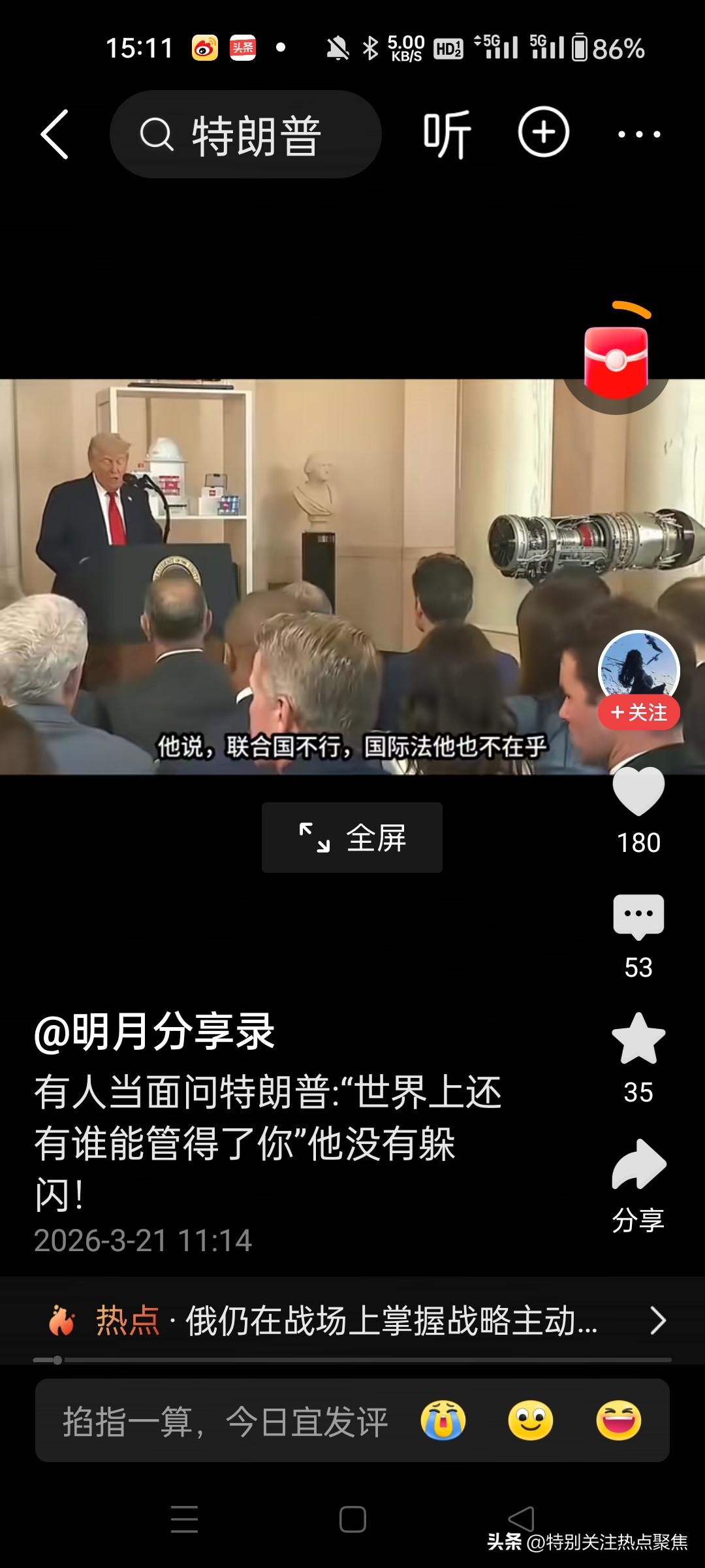 特朗普说,谁也管不了我,联合国不行,国际法也不行,只有个人品格和意志能管我,国与