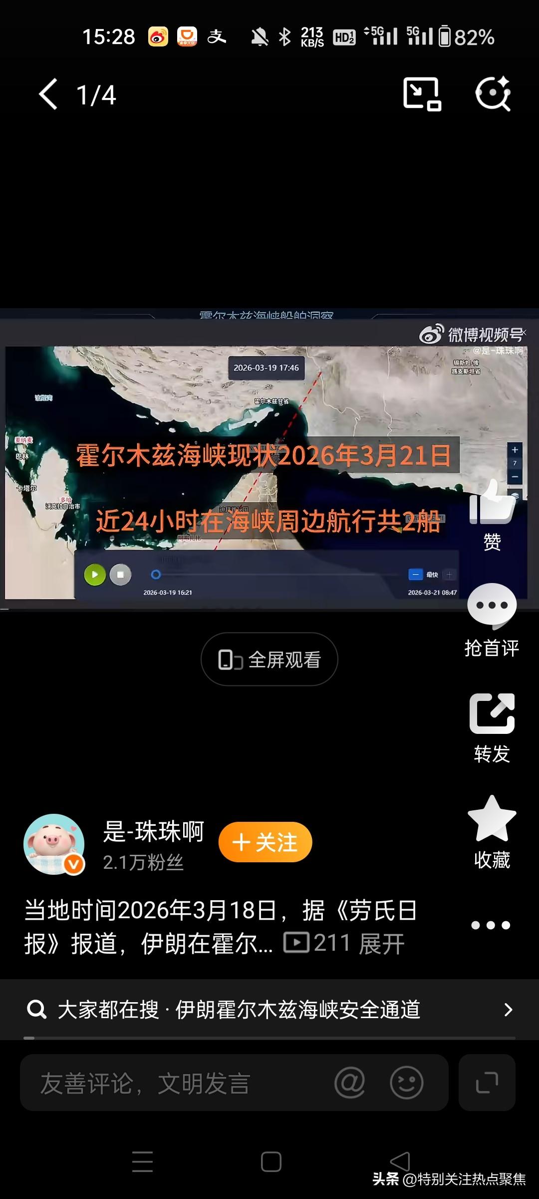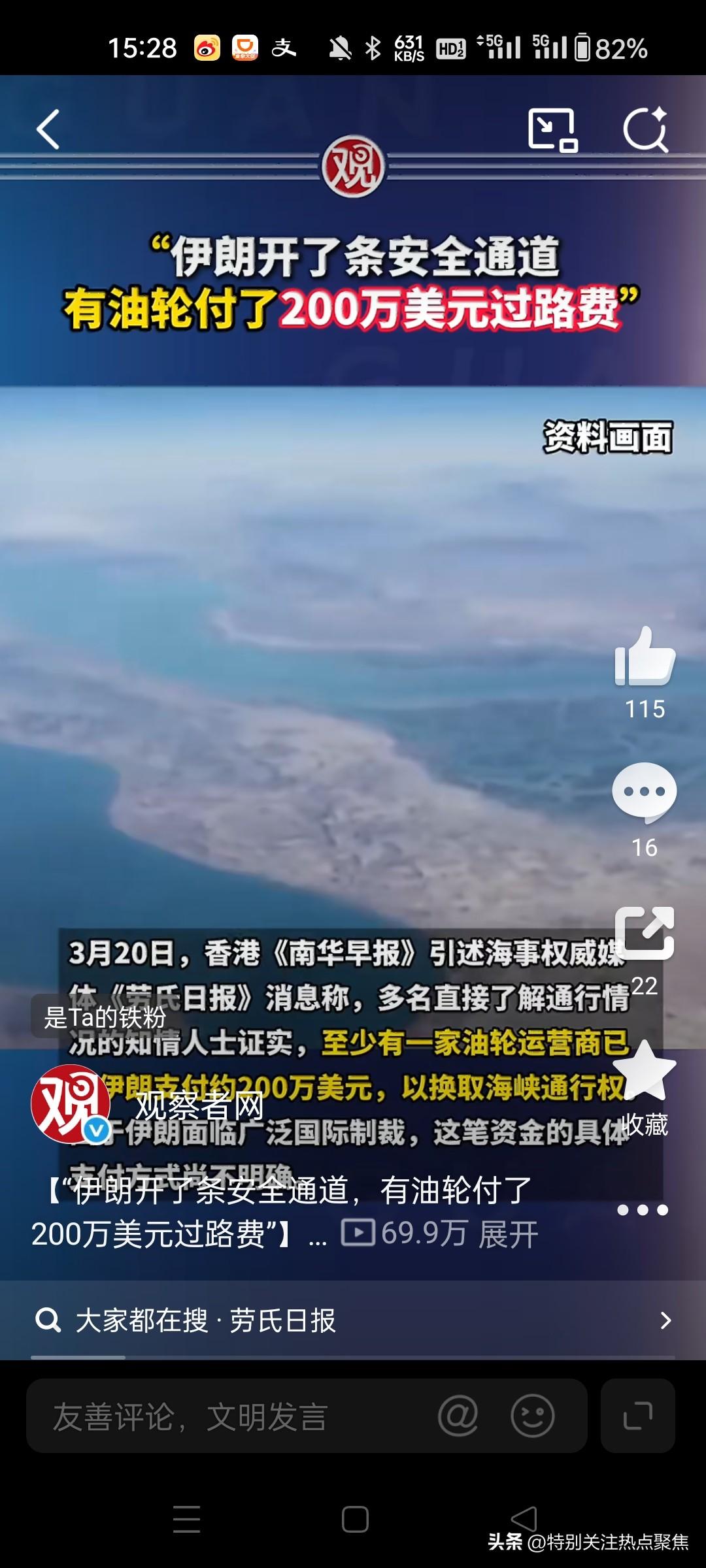 伊朗:允许非敌对国家船只通过霍尔木兹海峡,强调海峡仍对“敌人”(美以)关闭。 伊朗驻国际海事组织代表穆萨维于3月22日明确表示,允许非敌对国家船只通过霍尔木兹海峡,但需提前与伊朗协调安全安排,同时强调海峡仍对“敌人”(美以)关闭。@人民日报7人民日报新华国际 一、政策核心内容 有条件开放通行 非敌对国家船只(如中国、印度、巴基斯坦等)经伊朗政府安全审核后,可通过霍尔木兹海峡。具体流程如下: 提前报备信息:船东需提交船舶所有权、货物目的地等资料;@观察者网36 安全协调机制:伊朗革命卫队在拉腊克岛附近开辟“安全通道”,对船舶进行目视检查和个案审批;@财瑞宝4 支付通行费用:至少一艘油轮支付200万美元通行费,伊朗议会正推动立法将收费制度化。1927 敌对国家禁令不变 美国、以色列及参与对伊军事行动的欧洲国家船只仍被禁止通行。伊朗称此举为“行使自卫权”,并将地区紧张归咎于美以军事行动造成的7名海员死亡及约2万海员滞留。@新华国际10观察者网是-珠珠啊打酱油的花老板 二、国际响应与博弈 多国寻求合作 中国、印度、巴基斯坦、伊拉克等20余国正与伊朗磋商通行安排。中国因中立立场和能源合作需求,船只获优先放行及护航,印度则凭借恰巴哈尔港投资争取到特定便利。@庚白星君1316 西方阵营反制 英法德等6国发表联合声明,拟组建护航联盟保障海峡航行自由,但被伊朗谴责为“威胁地区稳定”。伊朗最高领袖顾问穆赫贝尔称,战后将在海峡建立“新秩序”,对西方实施反制。@Kevin在...519文秀佳庚白星君体育课代表wikKevin在纽约 三、对全球能源与航运的影响 短期供应链承压 目前约2000艘船舶滞留海湾,日均石油运输量暴跌85%,布伦特原油价格突破107美元/桶。航运保险费用从0.25%飙升至7.5%,部分船只被迫绕行好望角。@大大大餅干丶1834 长期规则重塑风险 伊朗试图将战时管控转化为长期收益: 经济层面:按每桶油1 - 5美元收费估算,年收入或达730亿至3650亿美元,用于弥补战争损失;@幼儿园园一莎... 政治层面:通过“区别对待”策略分化美国盟友(如向日本提出“驱逐美以大使”条件)。@胖胖-我脸1...43大大大餅干丶看边关月微微辣Vila幼儿园园一莎弥拉胖胖-我脸1点都不圆橘雾凝秋 四、争议与不确定性 法律合规性争议 国际海事法专家质疑伊朗单方面征收通行费违反“过境自由”原则。伊朗辩称其基于战时主权和自卫权实施管控。@掘藏师杜瓦39 执行风险 虽已有9艘船通过安全通道,但保险业和航运公司仍担忧误击风险。伊朗的船舶审核系统尚未完善,部分船只篡改注册信息(如伪装中国籍)试图通行。4445 注:当前政策仍处动态调整中,伊朗计划未来数日推出标准化审核流程,后续进展取决于美伊谈判及多边外交协商结果。50西子丹聊斋海燕看天下伊朗海峡危机