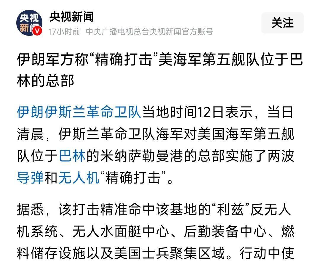 3月22日,据央视新闻直播间报道,昨天,伊朗再一次袭击美国在巴林海军第5舰队总部,这次击中了目标,对美国第5舰队造成重创。 评论,按照伊朗这个袭击速度,把美国赶出中东地区完全有这个可能性。[呲牙][呲牙][呲牙][呲牙][呲牙][呲牙]