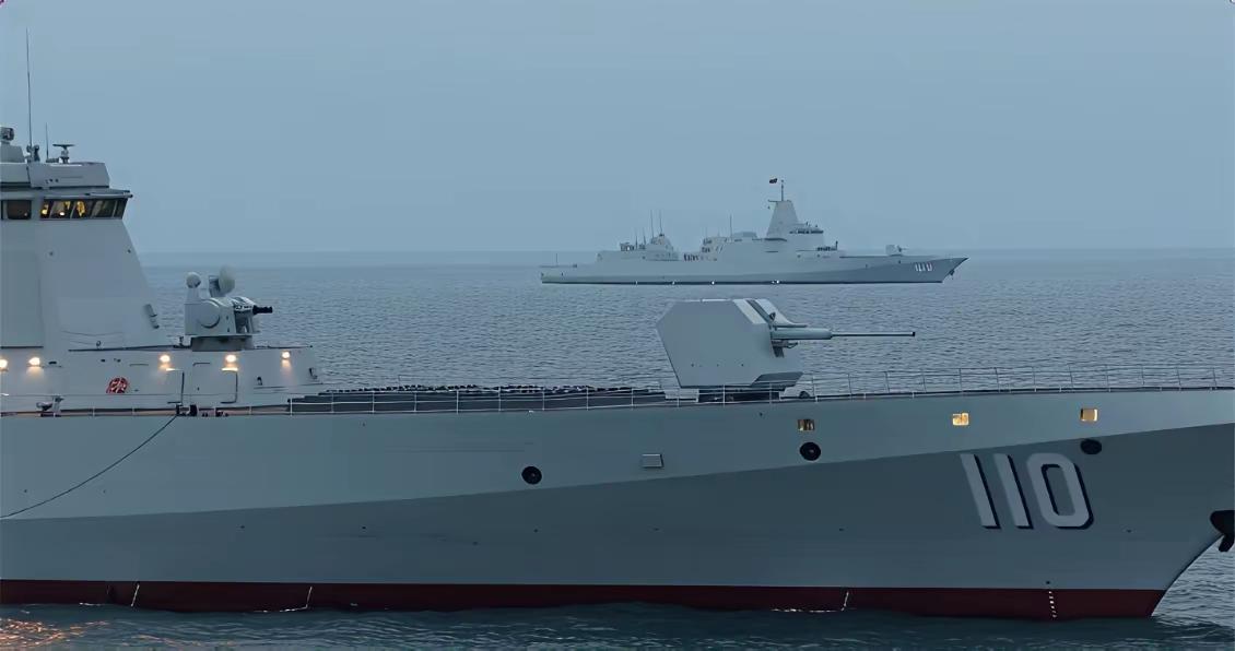 055型万吨大驱。东海舰队同时入列两艘万吨大驱首次同框出海编队海训。 这在如今的全球国家海军中,也是绝无仅有的。109舰,110舰同时入列东海舰队,极大的提高了东海舰队的整体作战水平,可以单独作战,也可以作为旗舰编队执行任务。 面对韩国,日本的军舰挑衅,我们也可以拒敌之国门之外。东海实战演习 东海军舰