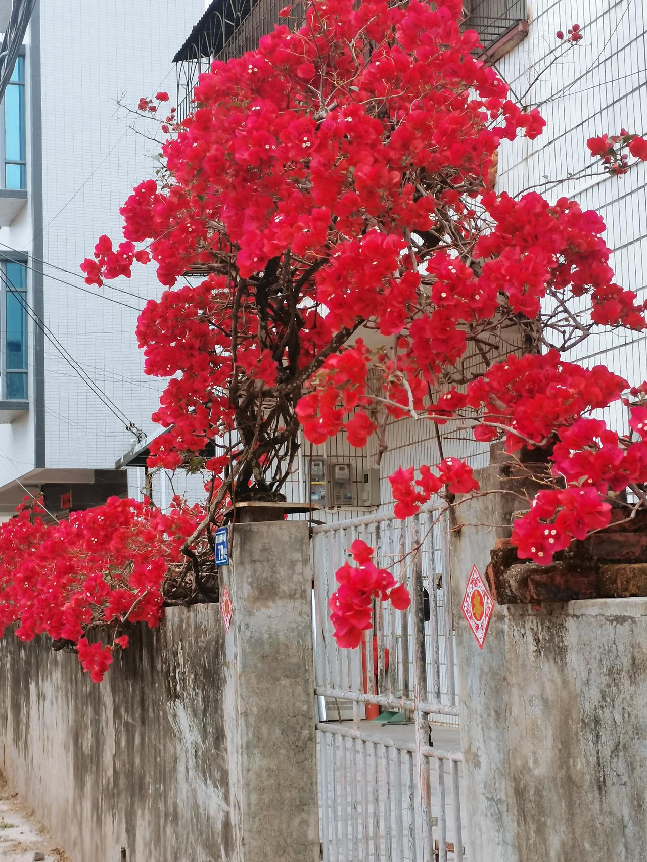 在乡村即使八点钟出去也算晚的了 今天周日,早晨按照上班时间起床,7:40分我出发去惠城区水口镇鹿岗村的猪肉摊位卖肉,当我五分钟后抵达熟悉的卖肉摊位时,案板上仅剩下一块五花肉,排骨早就卖完了。 以前过周末在凤岗,我们八点钟前去市场买菜,想买啥样的都有,在地道的乡村,而且仅有两家卖肉的摊位,第一家剩下一块五花肉,另外一家已经卖完摊位都收拾干净了。 打开导航最近的市场也在4-5里地之外,如果想要买到一块心仪的排骨和猪肉,还是必须要赶早的,如果按照上班时间那是不可能买到想要的肉肉的。 没有买到心仪的肉肉,在村里转了一圈,遇见了鹿岗村正在盛开的三角梅,这里的风景也不错。
