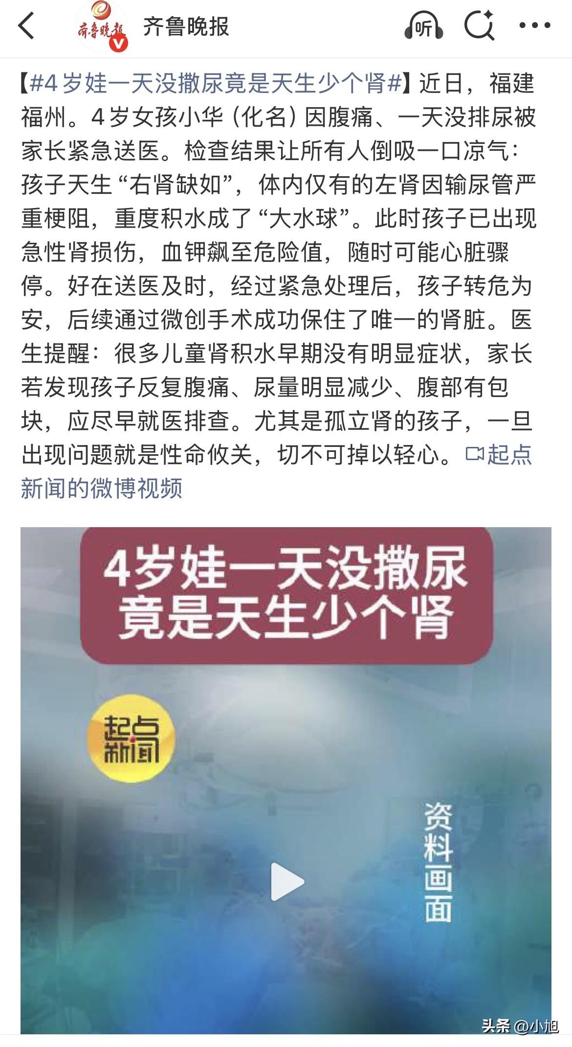 但这个案例让人后背发凉的地方,不只是孩子只有一个肾。而是这个“只有一个肾”的事实,在4年后才被发现。