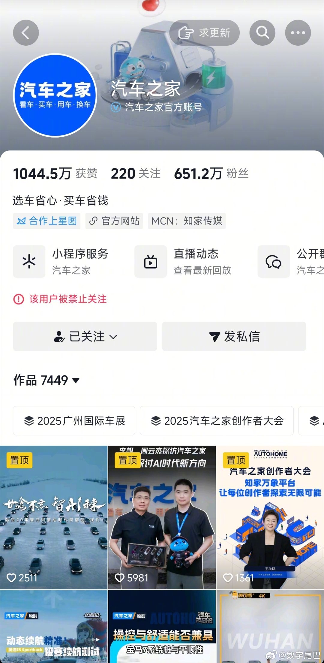 次日,汽车之家被禁止关注。