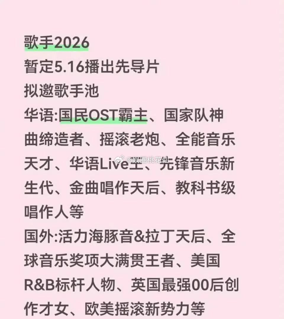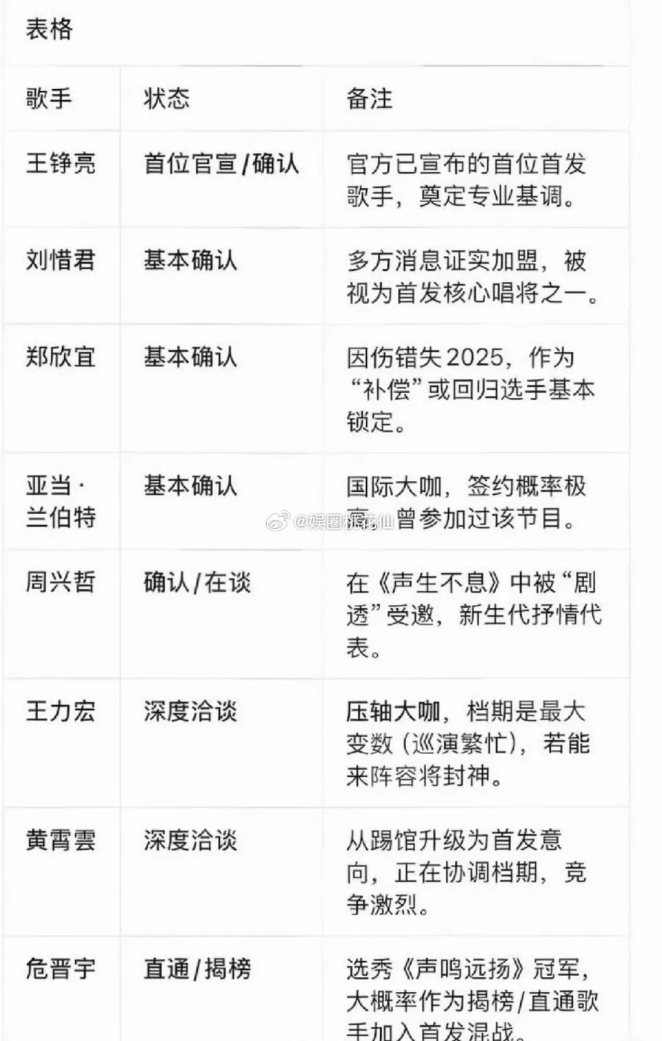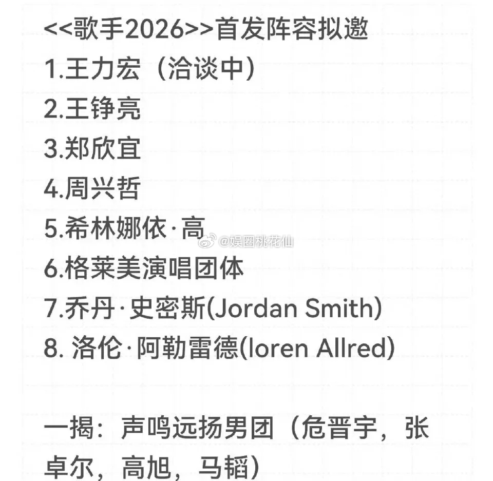 看了一圈歌手2026的拟邀阵容,每个名单里都有王铮亮,看来是八九不离十了!