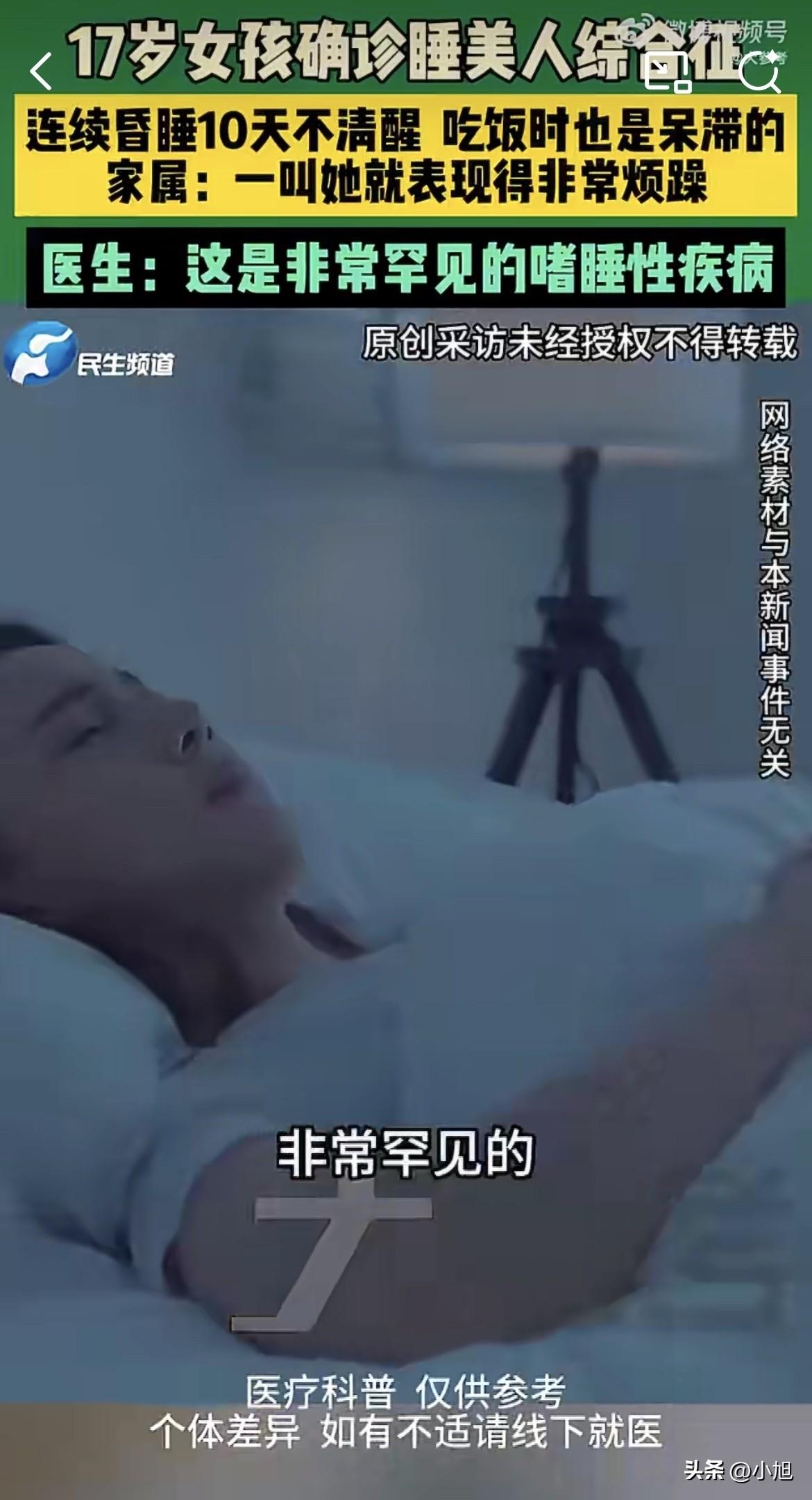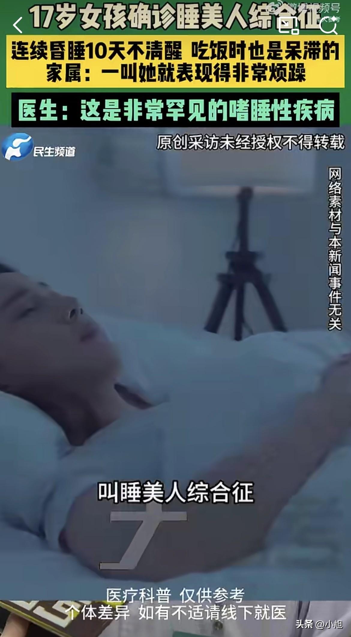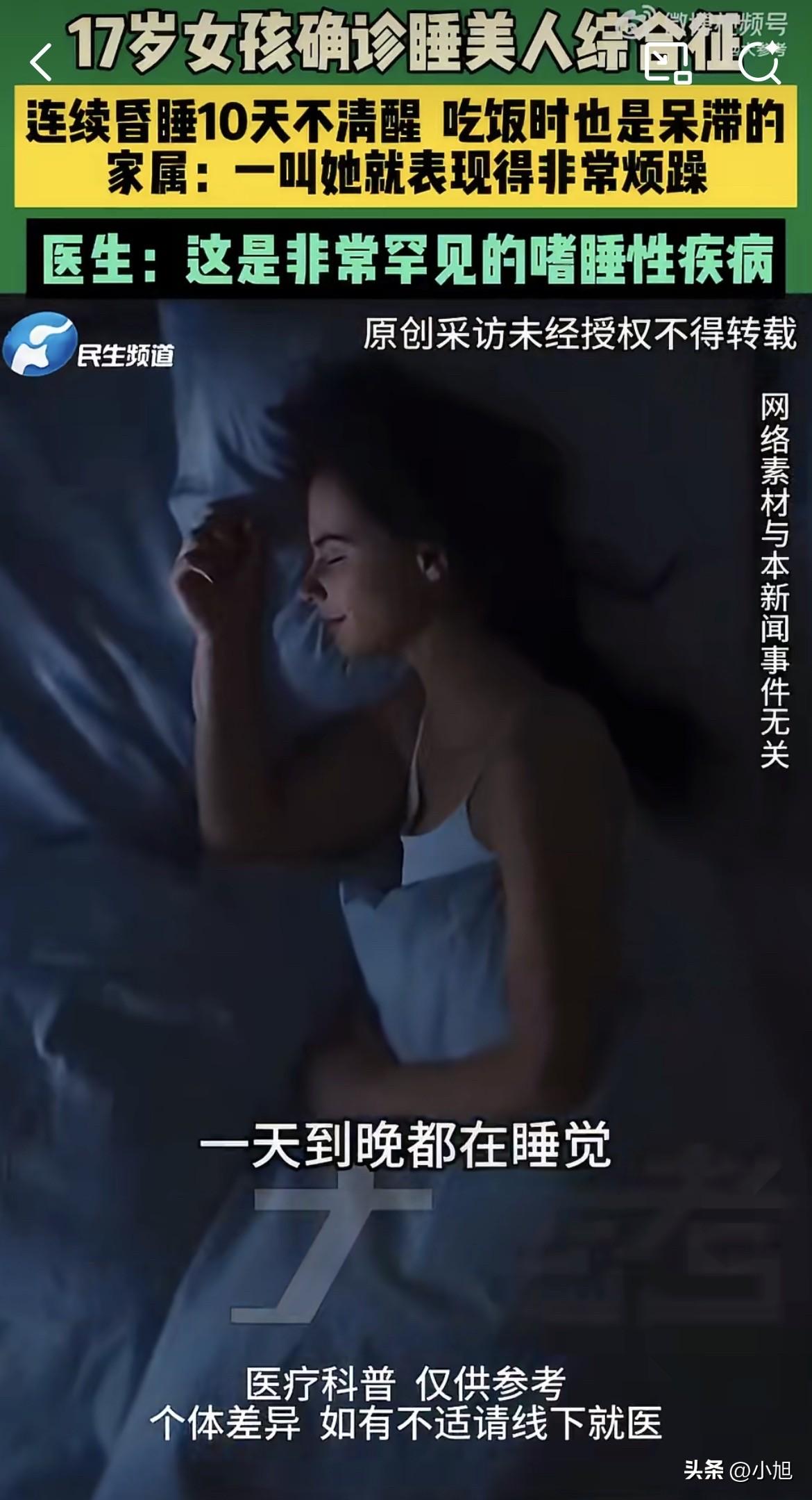 有人说这病叫睡美人综合征,听着还挺浪漫。但真正的睡美人,睡着的时候是安安静静的,王子一来就醒了。现实里不是这样。现实里这个姑娘睡着的时候会突然坐起来吃东西,眼神是空的,像梦游一样。醒着的那一会儿,她烦躁、暴躁、认不出亲人。