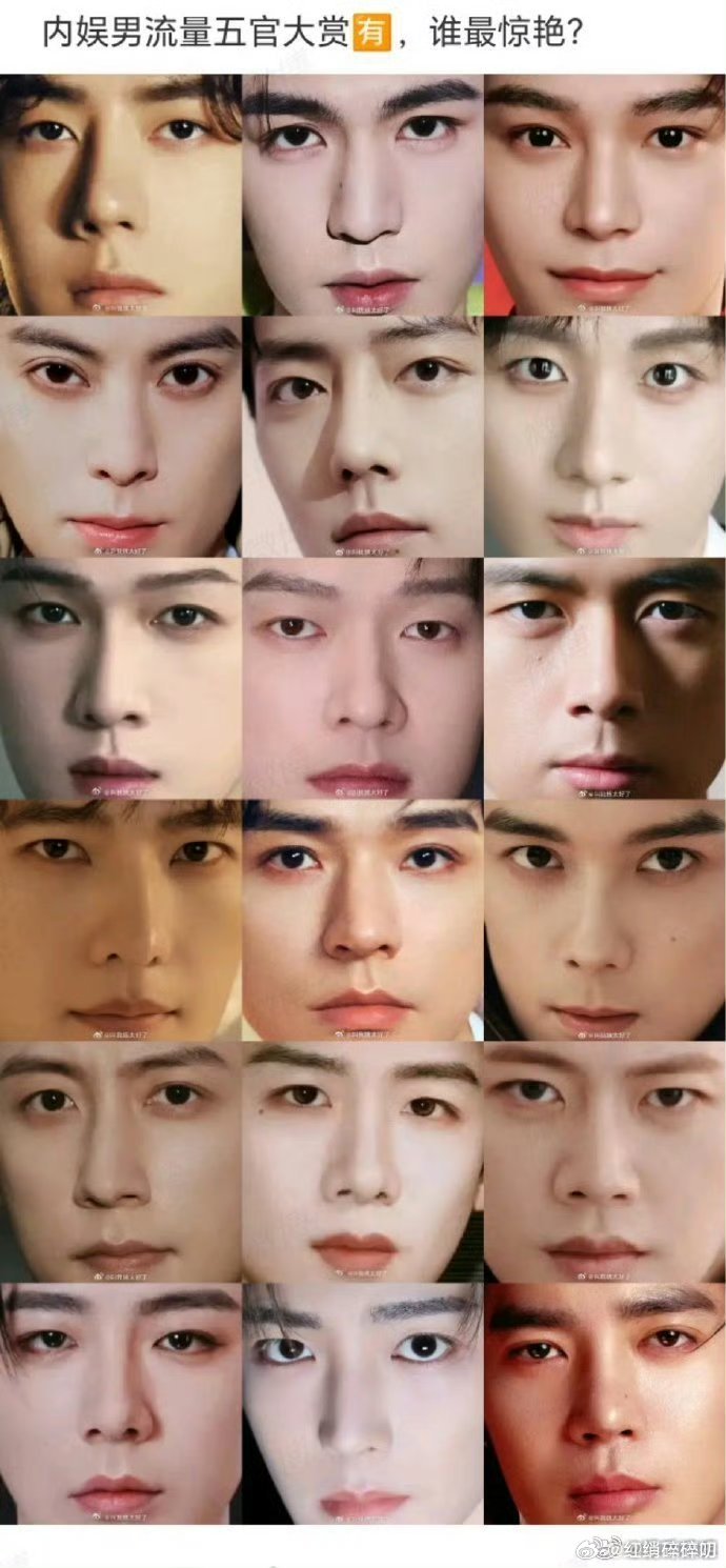 内娱男流量五官大赏就这个图的话,无褶版张凌赫还是很优越的