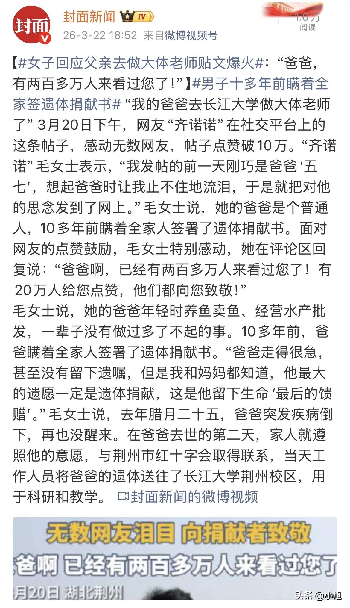 配了几张照片,有爸爸生前的样子,还有那张遗体捐献荣誉证书。
