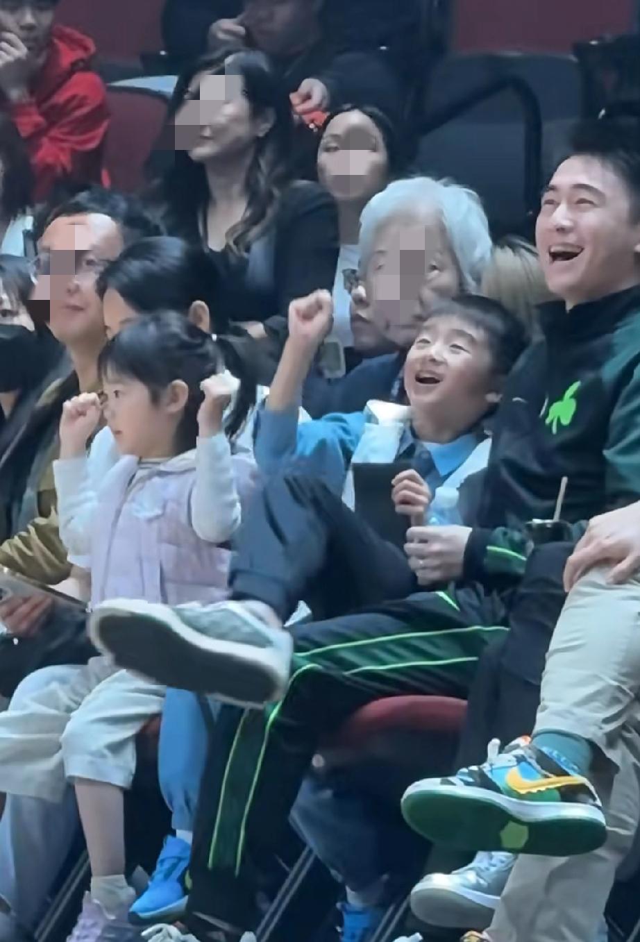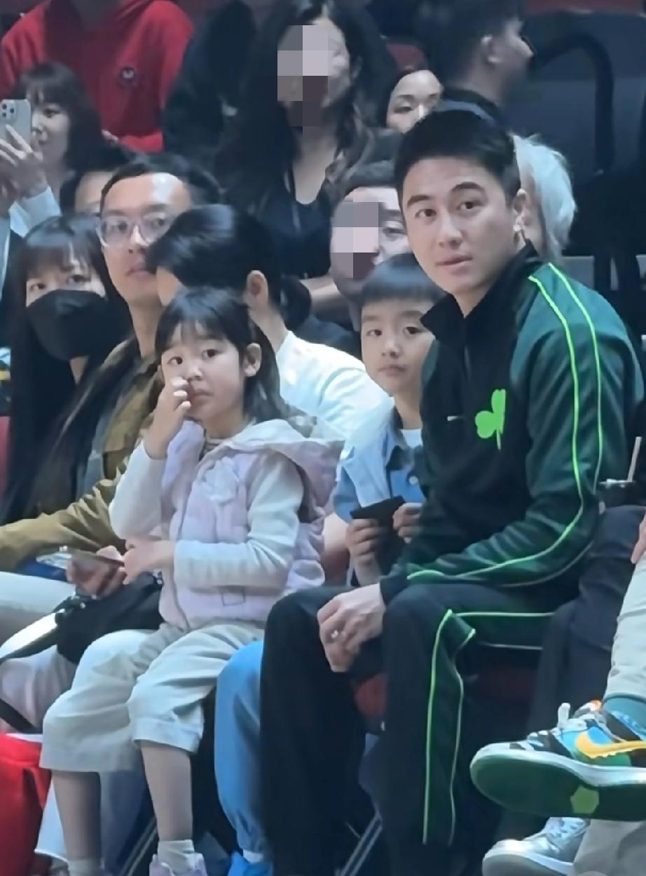 奚梦瑶和何猷君的两个孩子真没一个像妈妈,3月22日,何猷君带俩娃在澳门看球赛,奚