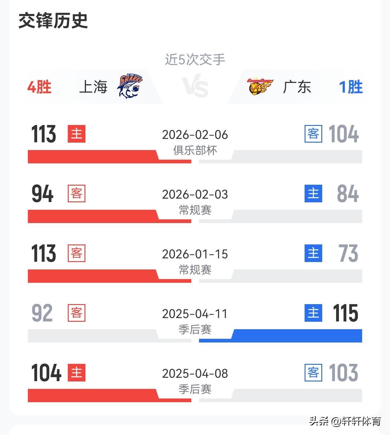 3月23日CBA联赛将迎来一场焦点之战,积分排名第一的上海男篮将坐镇主场迎战来访的广东男篮,截止目前上海男篮以24胜4负排名常规赛积分榜第一,广东男篮以19胜9负排名积分榜第四位,最近5场比赛交手上海男篮以4胜1负占据绝对优势,尤其本赛季双方三次交手,上海男篮完成了对广东男篮的三杀,本轮比赛双方势必全力以赴,上海男篮与排名第二的广厦男篮仅有一个胜场的优势,所以上海男篮为了稳固榜首位置明天必然会全力以赴拿下比赛,反观广东男篮明天比赛为了避免本赛季,出现被上海男篮四杀的尴尬局面,必然会拼尽全力的争取比赛胜利,同时对于广东男篮近期由于比赛结果不尽如人意,球队从上到下压力都非常大,所以明天的比赛也是广东男篮证明自己还是那支具备争冠实力的球队。
