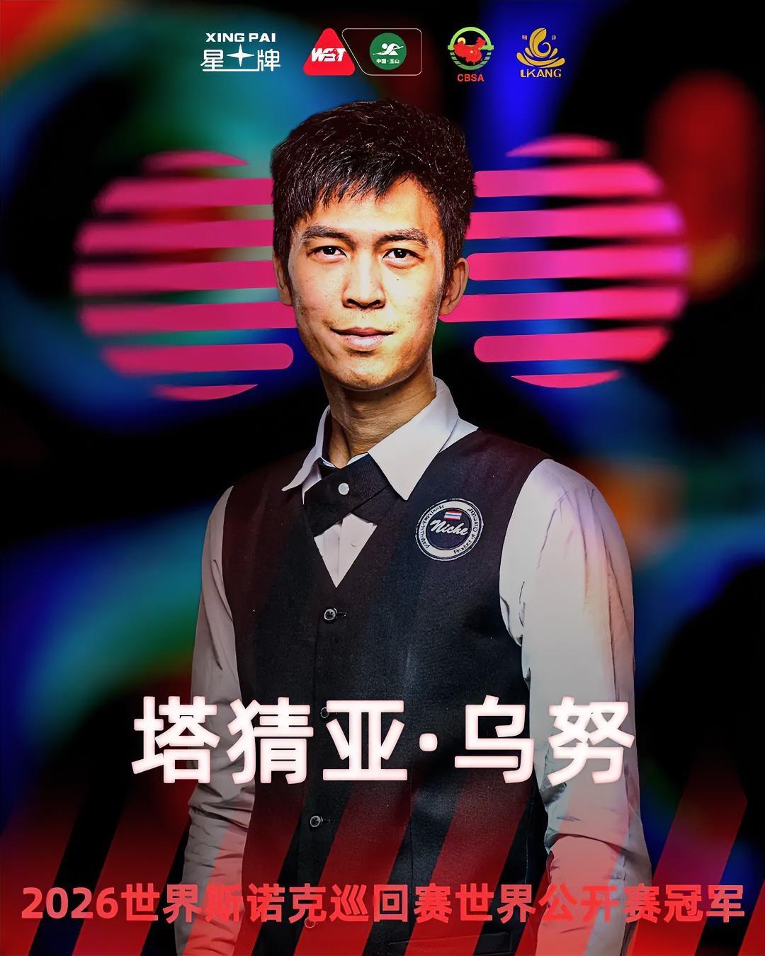 随着塔猜亚·乌努10-7奥沙利文夺冠,斯诺克玉山公开赛,历届冠亚军更新如下 1、2016年 冠军:阿里·卡特 亚军:乔·佩里 2、2017年 冠军:丁俊晖 亚军:凯伦·威尔逊 3、2018年 冠军:马克·威廉姆斯 亚军:大卫·吉尔伯特 4、2019年 冠军:贾德·特鲁姆普 亚军:塔猜亚·乌努 5、2024年 冠军:贾德·特鲁姆普 亚军:丁俊晖 6、2025年 冠军:约翰·希金斯 亚军:乔·奥康纳 7、2026年 冠军:塔猜亚·乌努 亚军:奥沙利文