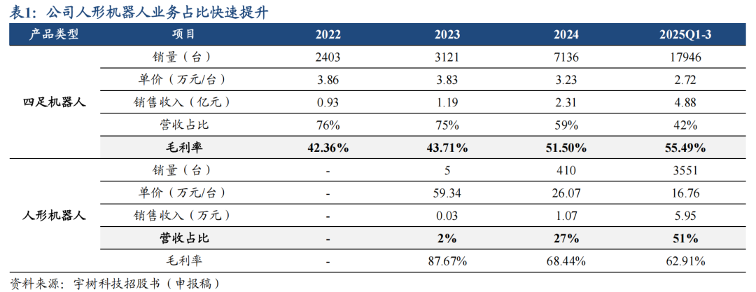 (1)高毛利率的人形机器人营收占比提升:2025Q1-3公司人形机器人业务实现营收5.95亿元,营收占比由2023年的2%提升至51%。