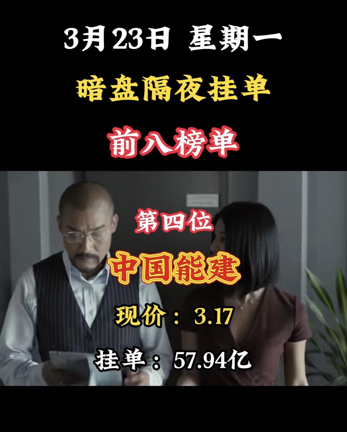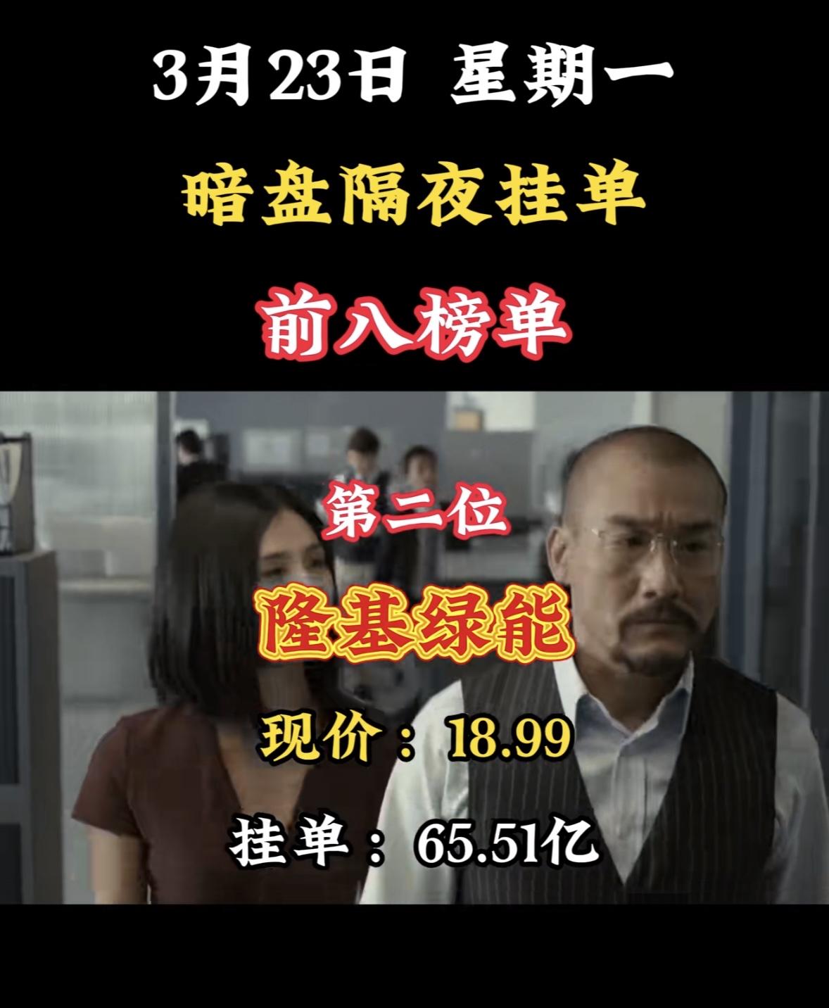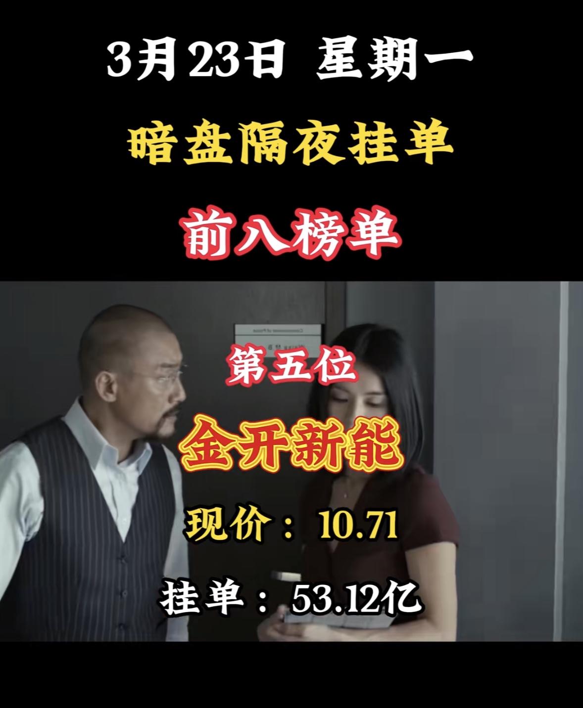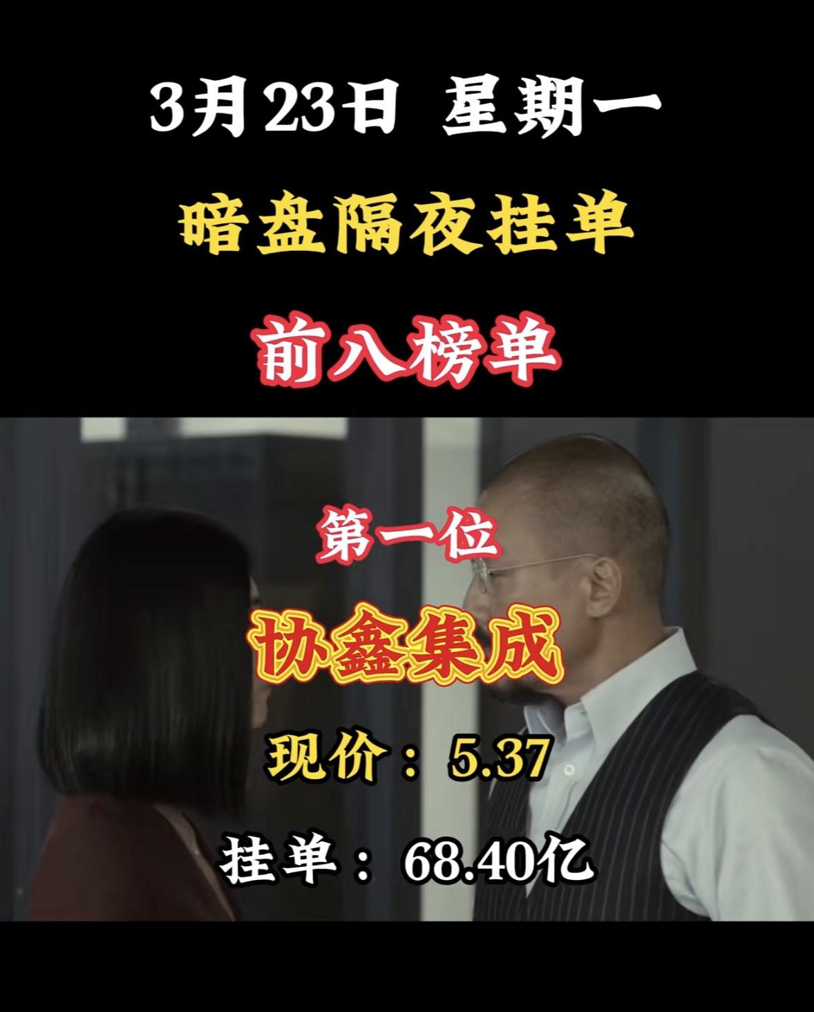 3月23日暗盘隔夜挂单前八榜单来了,这数据相当有看头! 像中利集团以134.49亿买单居首,现价3.81,卖单22.37亿。兆新股份也不逊色,买单125.54亿,现价4.49。东方新能、华电辽能、华电能源等也都在前列,各自有着高额的买单和卖单。 从现价来看,国晟科技最高,达到24.21,而兆新股份相对较低。这些数据反映出市场对不同股票的热度和预期,说不定能给股民们一些投资参考呢。