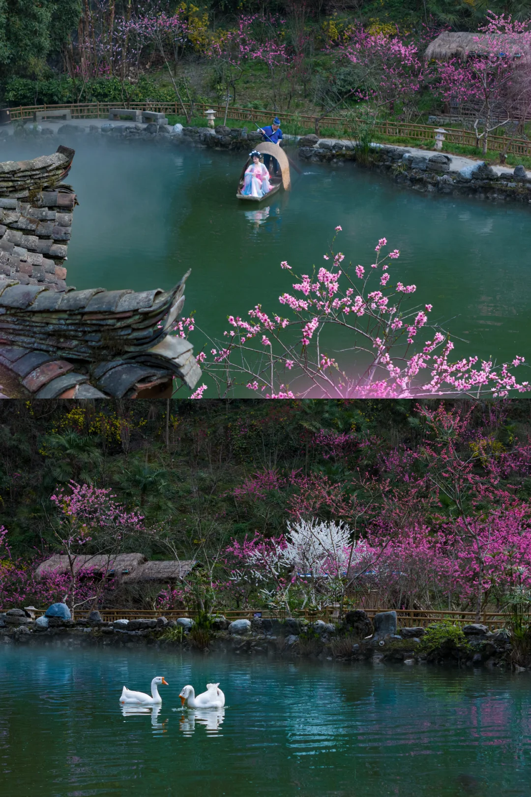 📸 出片机位:古风游船、桃花林、拙园、婚恋打卡区、古城夜景,汉服浅色系穿搭超出片。