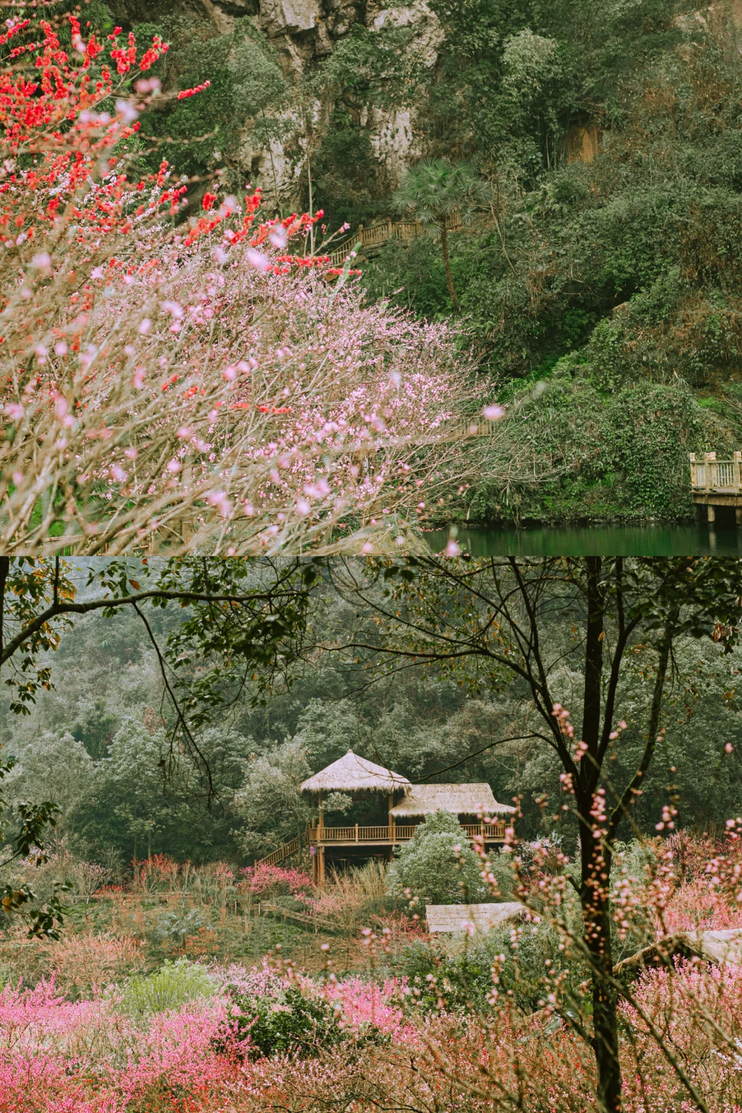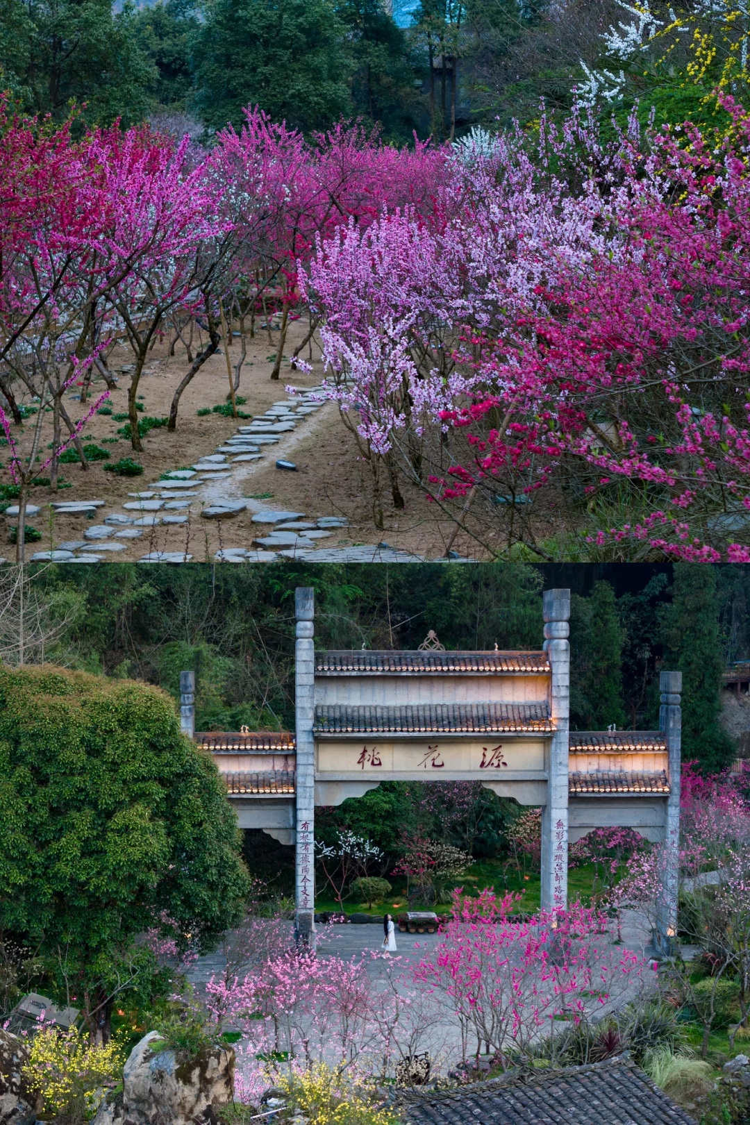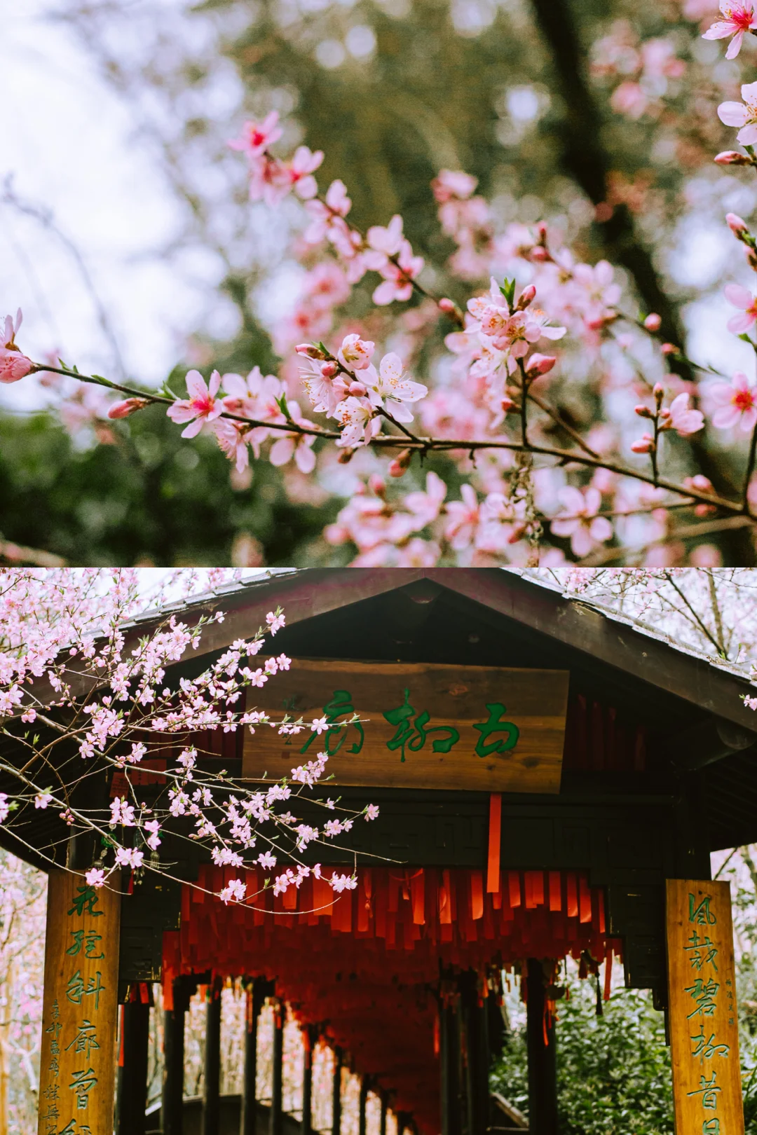 石牌坊和陆游对诗秒入剧情,美池听非遗木叶吹奏超治愈;桃花林绑丝带、许愿,桃花花神亲自送祝福;