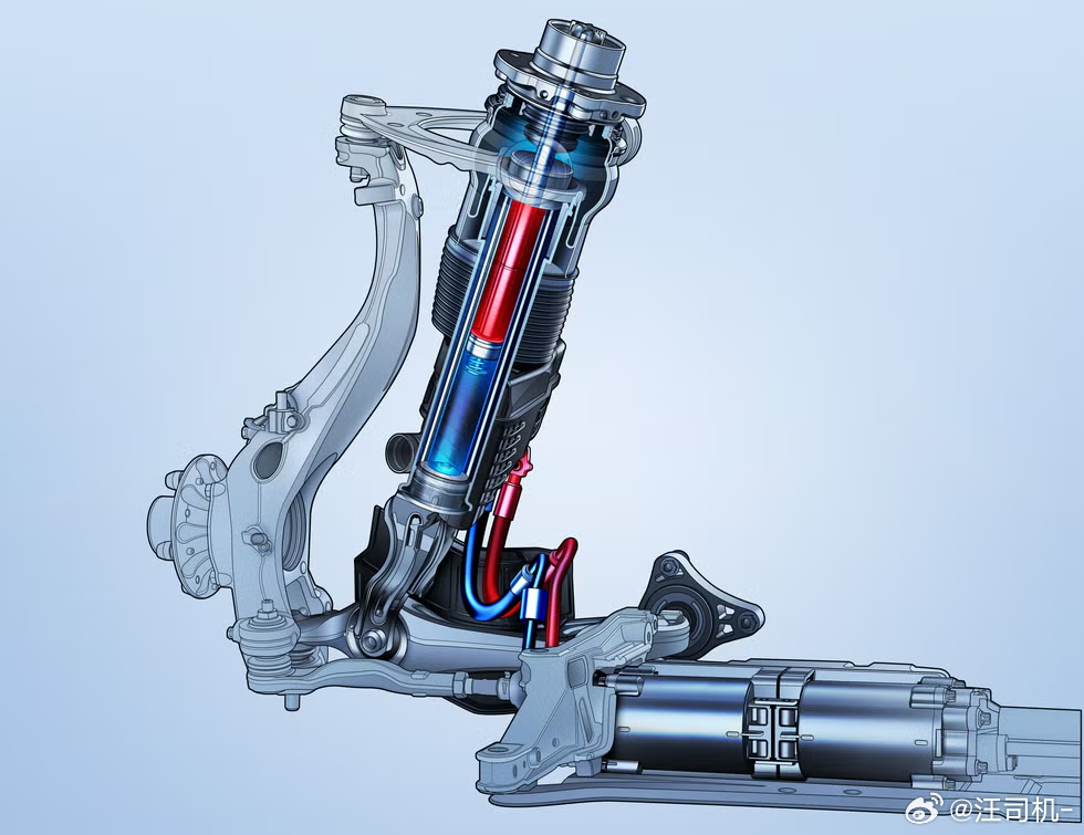 实际上保时捷阵营中,率先用上全主动悬架的panamera PHEV与taycan EV,都不是CM那种紧凑集成的作动器,而是电机较大的分体式。