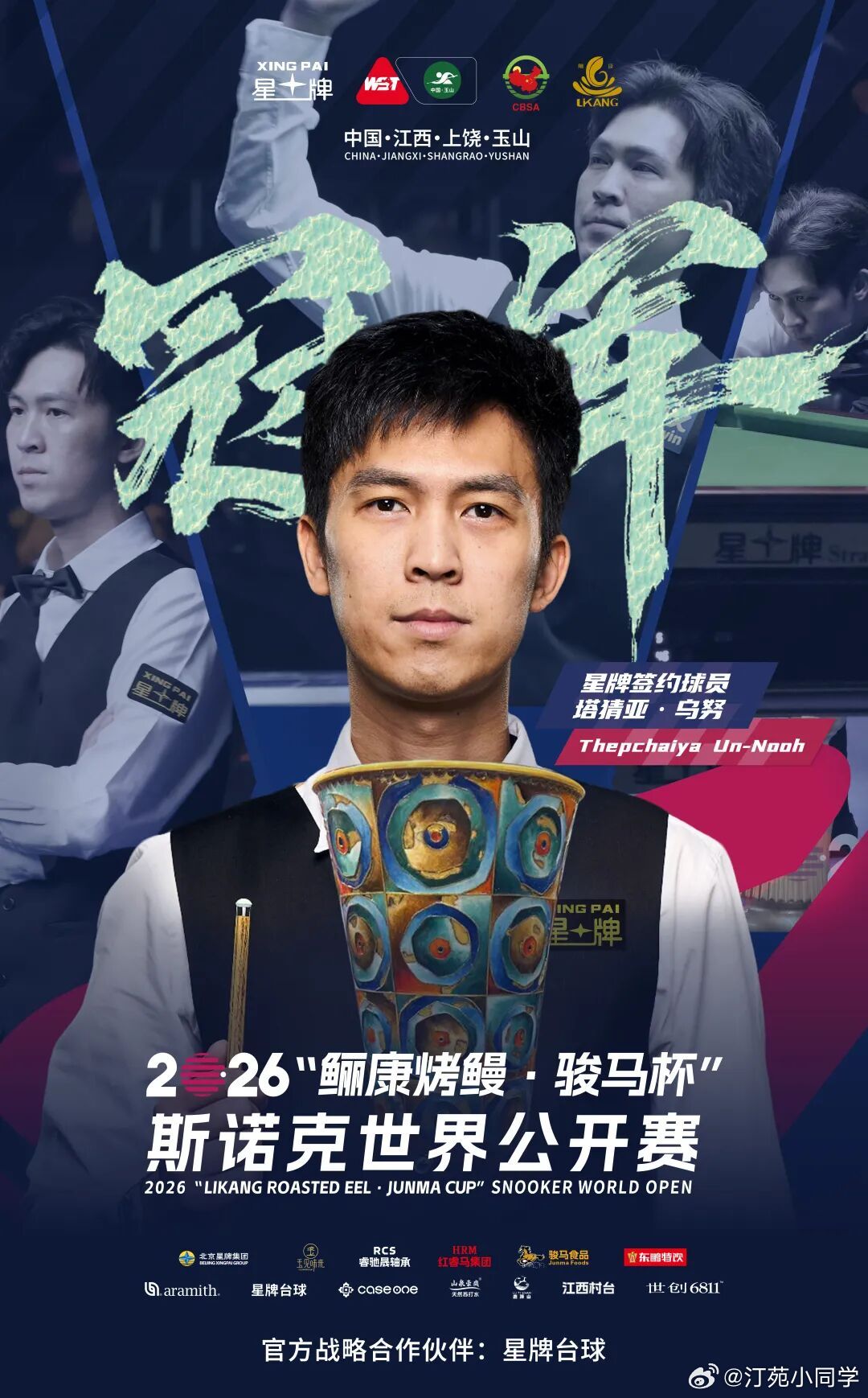 随着塔猜亚10-7奥沙利文夺冠,斯诺克玉山公开赛,各项大奖出炉1、赛事冠军—