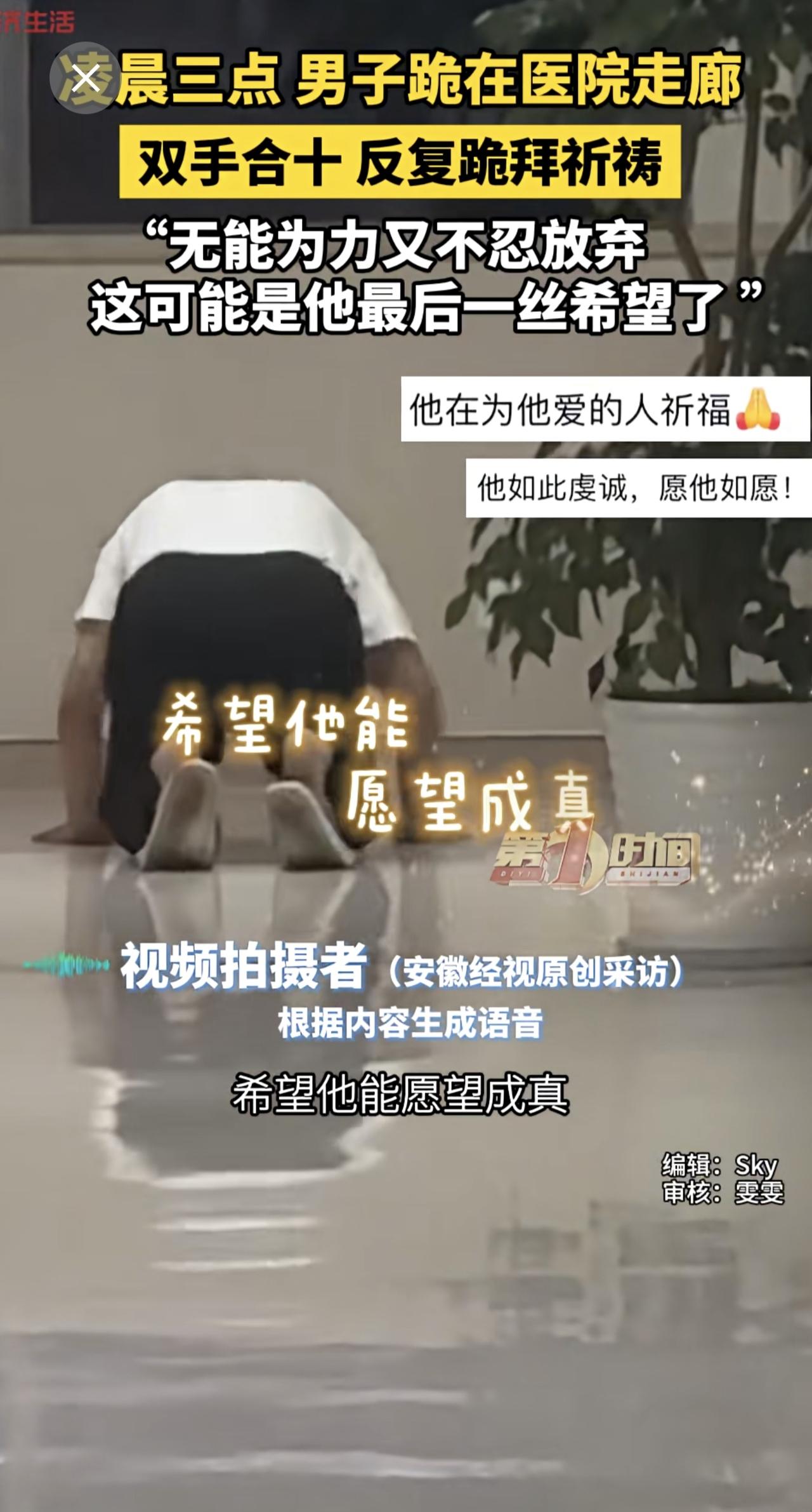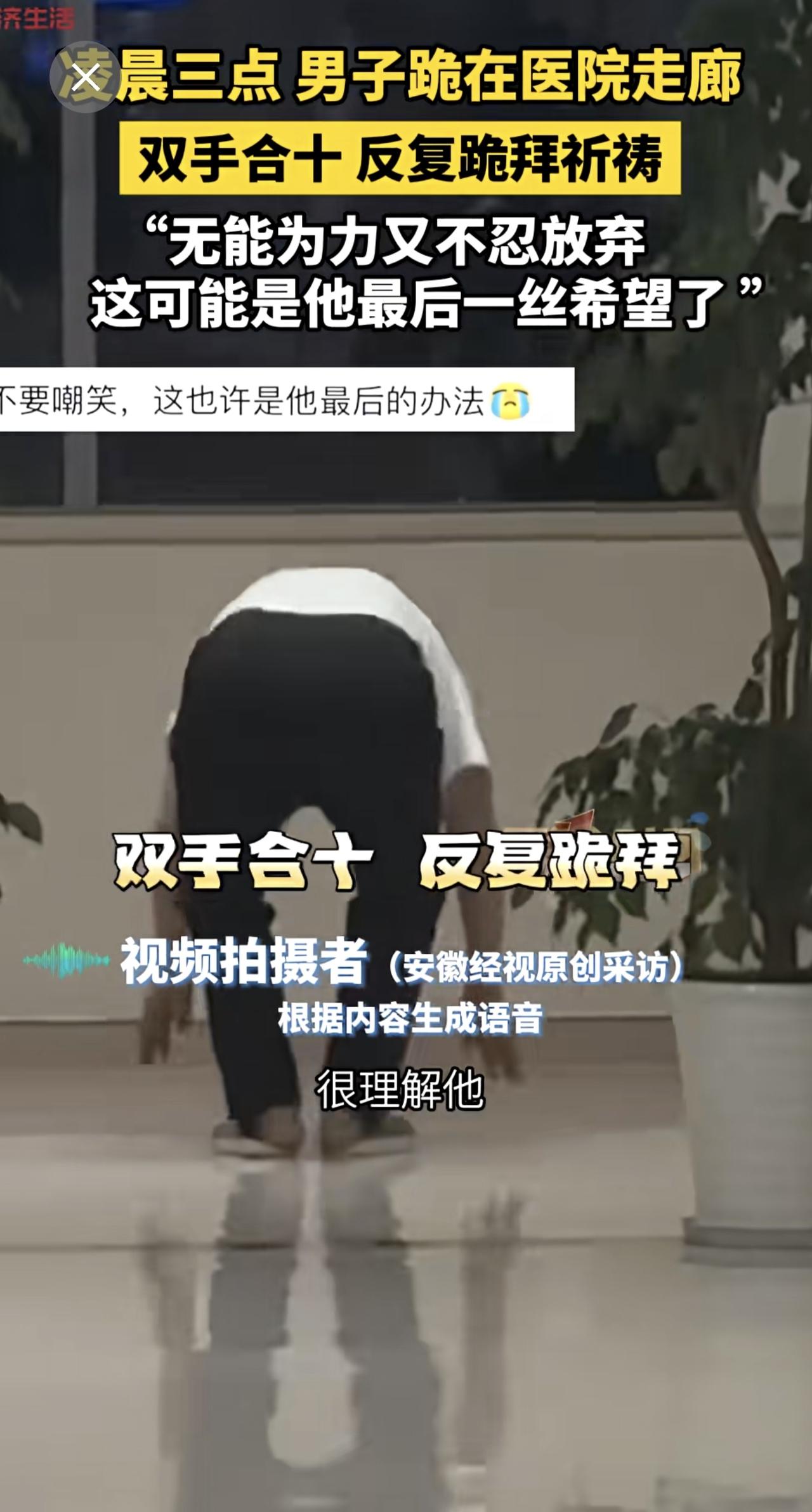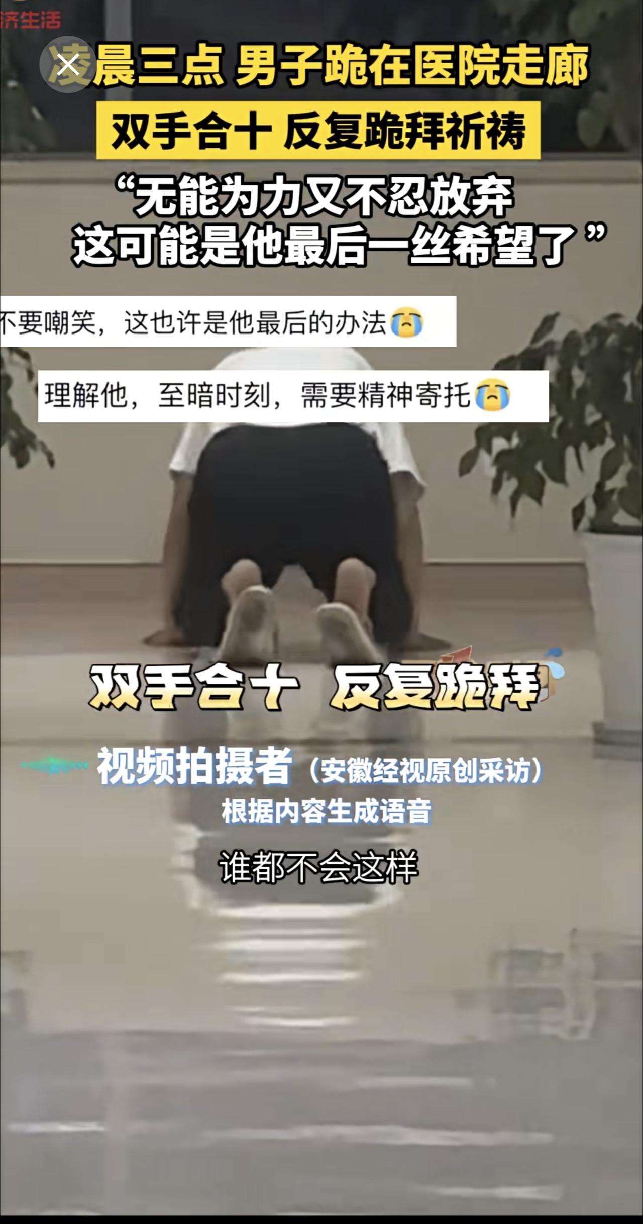 凌晨三点 男子跪在医院走廊,双手合十 反复磕头祷,“无能为力又不忍放弃,这可能是