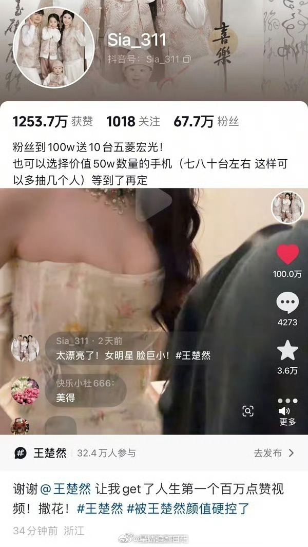 网友发王楚然Dior活动五秒钟视频点赞破百万,把富婆姐姐高兴坏了