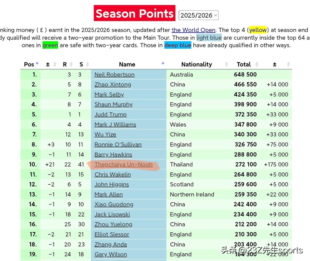 凭借一举爆冷夺冠,塔猜亚的单赛季排名上升到第10位,在最后时刻奇迹发生,首次入围巡回锦标赛!同时,肖国栋遭遇极小概率事件,无缘参赛![发怒][伤心] 如果塔猜亚在巡回锦标赛再度夺冠,他的排名将重返前16,丁俊晖将无法直通克鲁斯堡!一切的悬念,还得继续![泪奔]