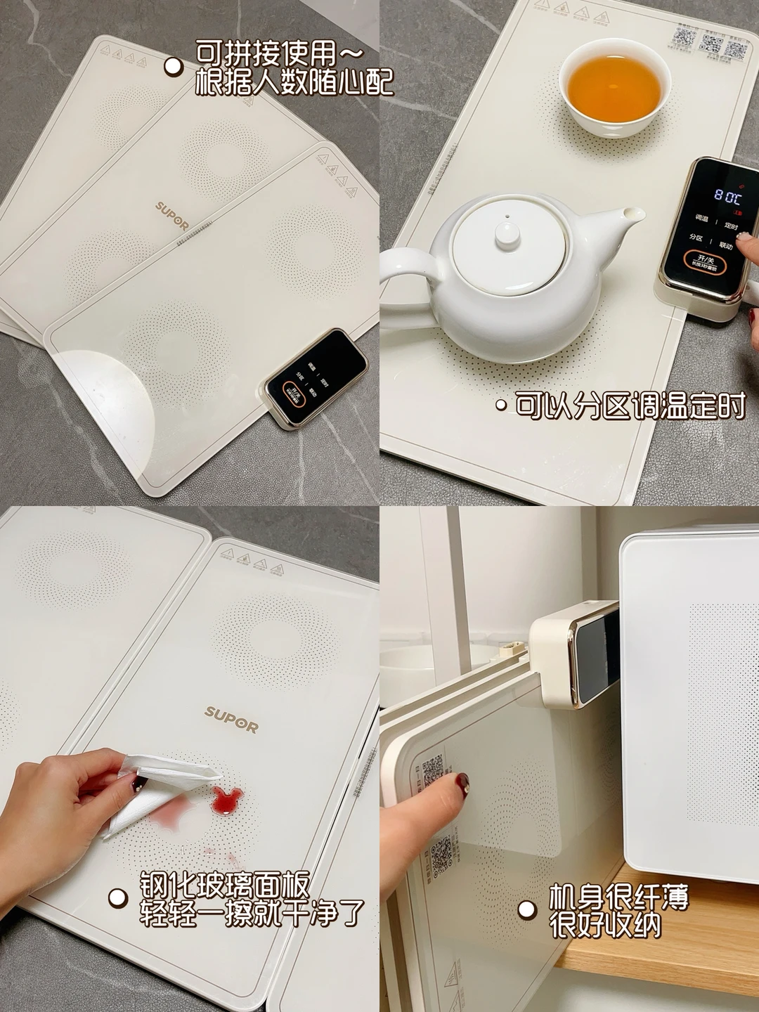 最近用的苏泊尔暖菜板成了我的好帮手,老人孩子吃饭慢、菜也不会变凉。它不光是收纳方便、可拼可拆可折叠,而且每块板的温度都能单独调节、也可直接调整块板。钢化玻璃面板,特别好清洗!