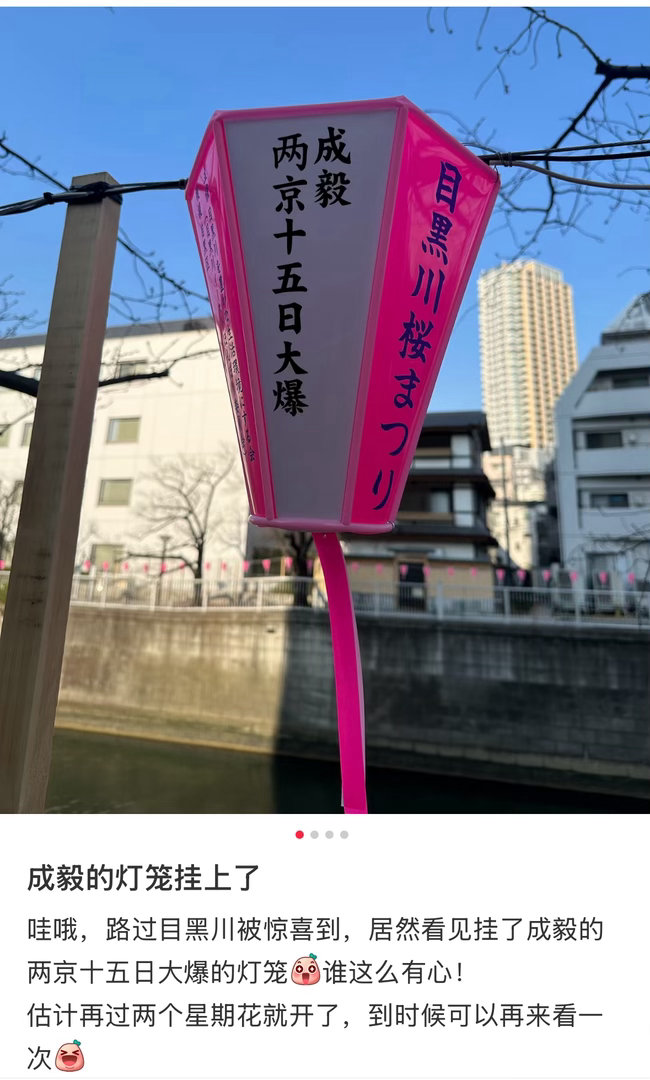 目黑川成毅的樱花灯笼,很快樱花就要开了,就可以一起看花开啦“两京十五日大爆,成毅平安顺遂,健康无忧!”