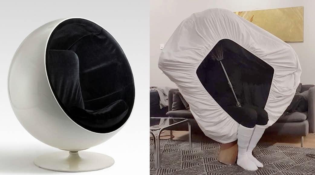 六年前居家隔离,有人用内裤和超市塑料袋做了套中世纪盔甲。最绝的是那件红色“裤子”,其实是当地常见的购物袋。