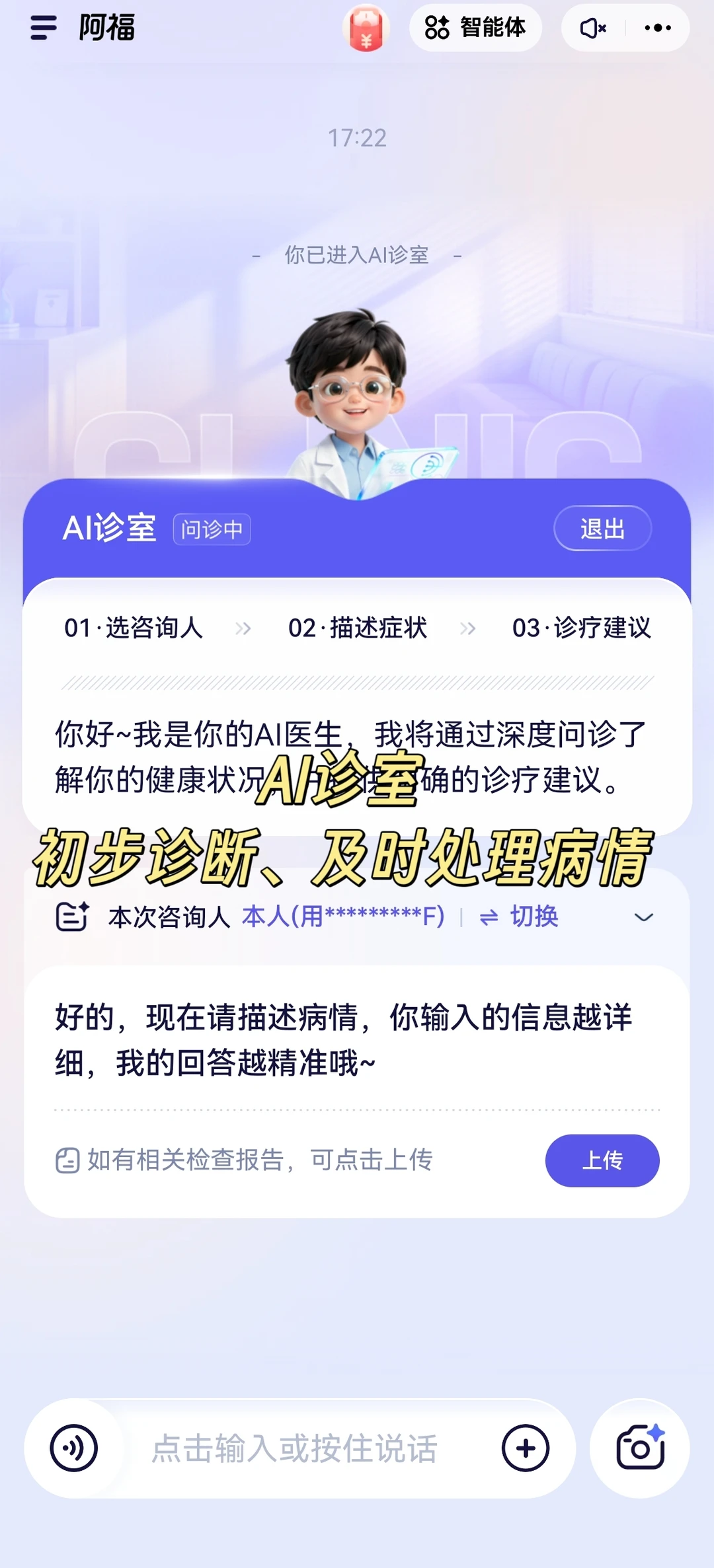 它的AI诊室功能很专业,能给明确的判断和处理建议,还会主动追问你关键的体检指标信息。在线问诊、挂号、医保码这些一条龙服务全涵盖,还能在线“问名医”,相当于有个名医智能体随时待命。