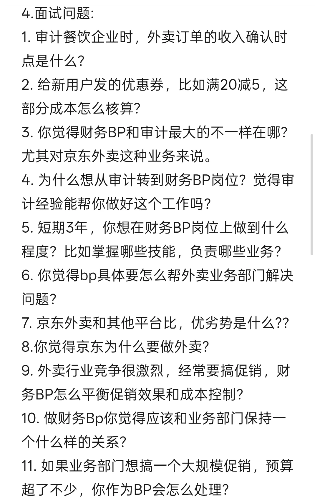 3. 你觉得财务BP和审计最大的不一样在哪?尤其对京东外卖这种业务来说。