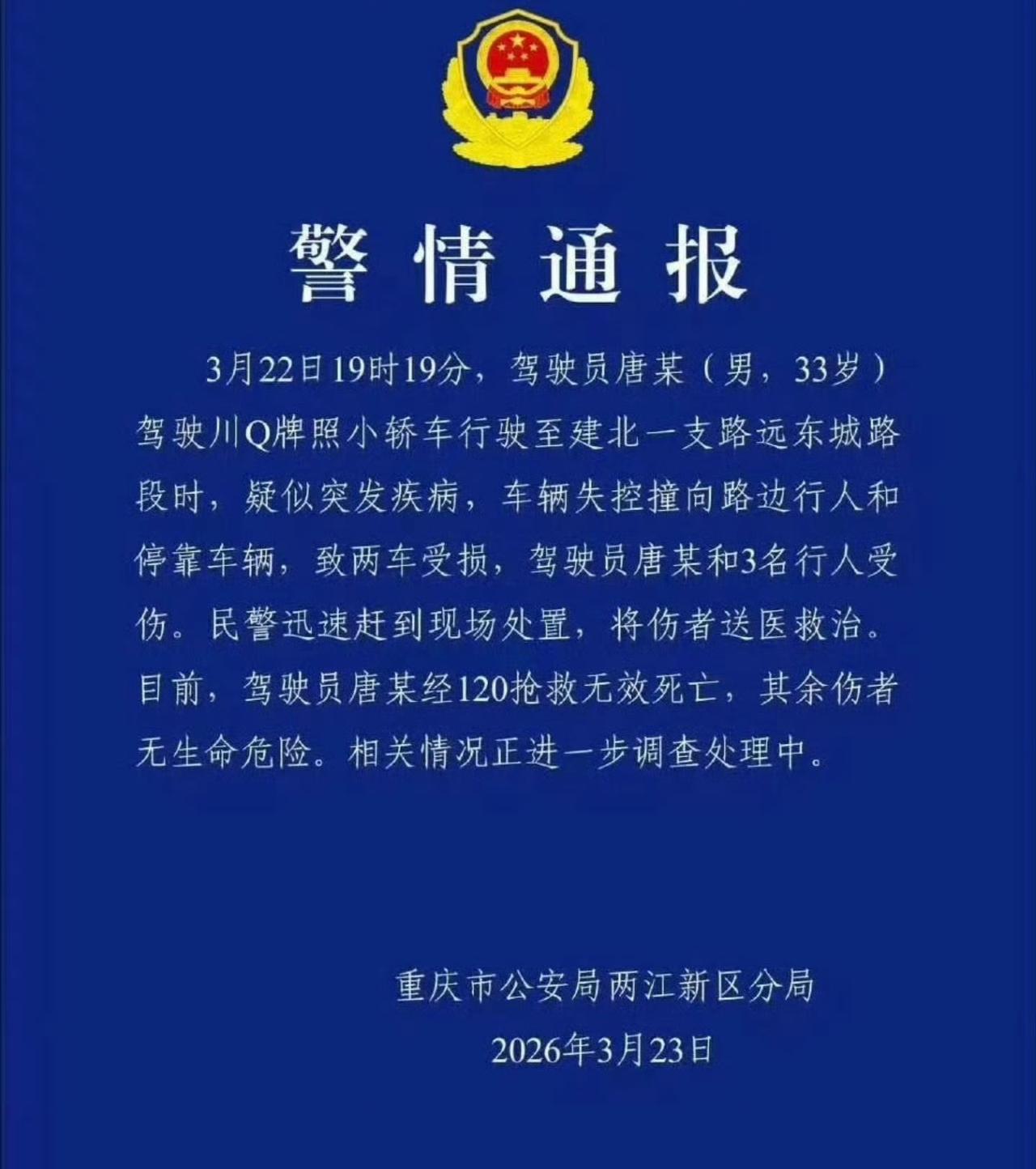 重庆观音桥一小车冲撞人群,疑似司机突发疾病! 相关的现场图片很多人都拍到了,当地深夜发布了相关的通告,该地点是重庆一个非常知名的地方观音桥,无论是本地人还是外地的游客都非常的多。 不信谣不传谣,一切结论以当地的正式发布通告为准。各位是怎么看的?欢迎评论区留言。
