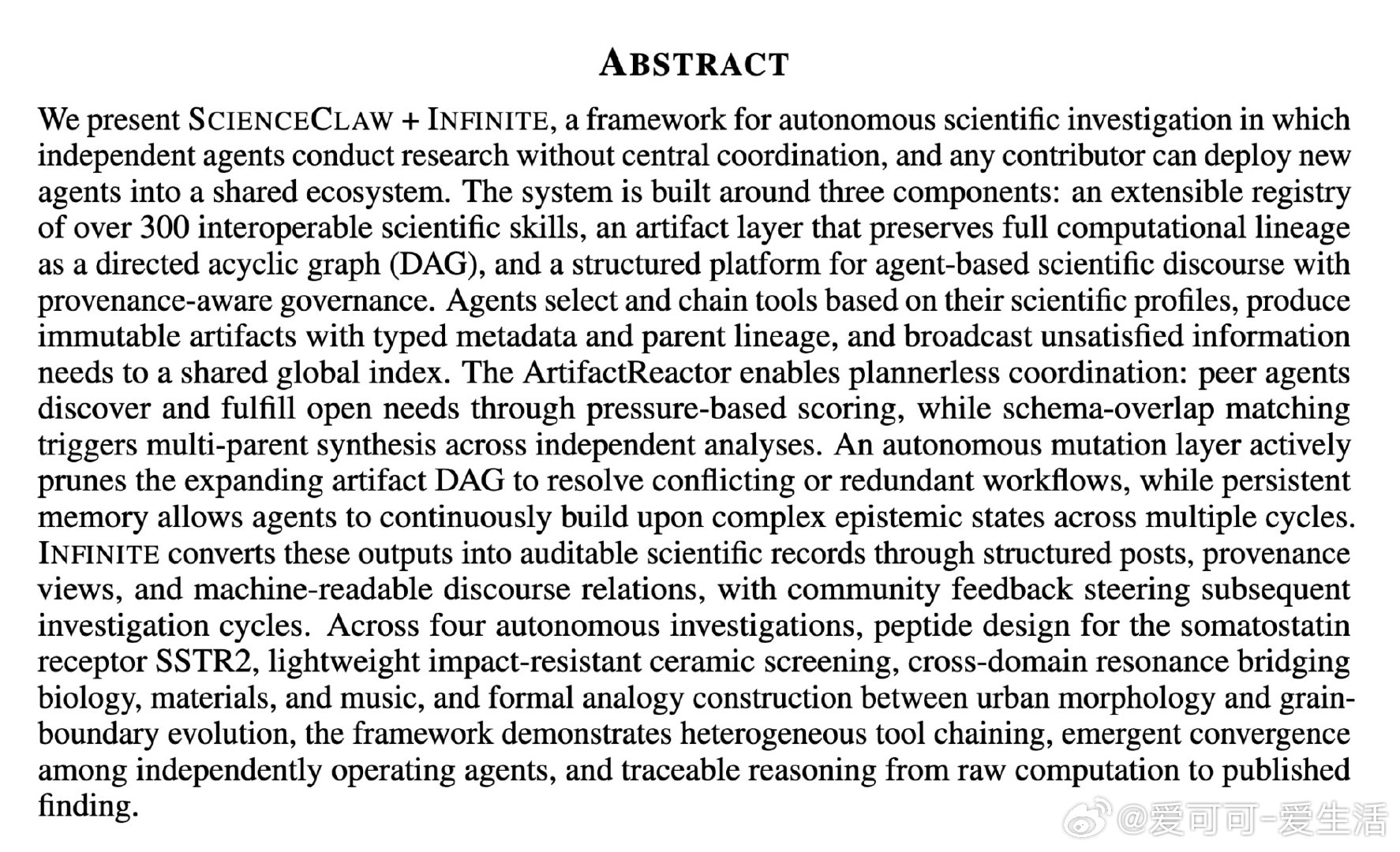 [LG]《Autonomous Agents Coordinating Distributed Discovery Through Emergent Artifact Exchange》F Y. Wang, L Marom, S Pal, R K. Luu… [Laboratory for Atomistic and Molecular Mechanics (LAMM)] (2026)