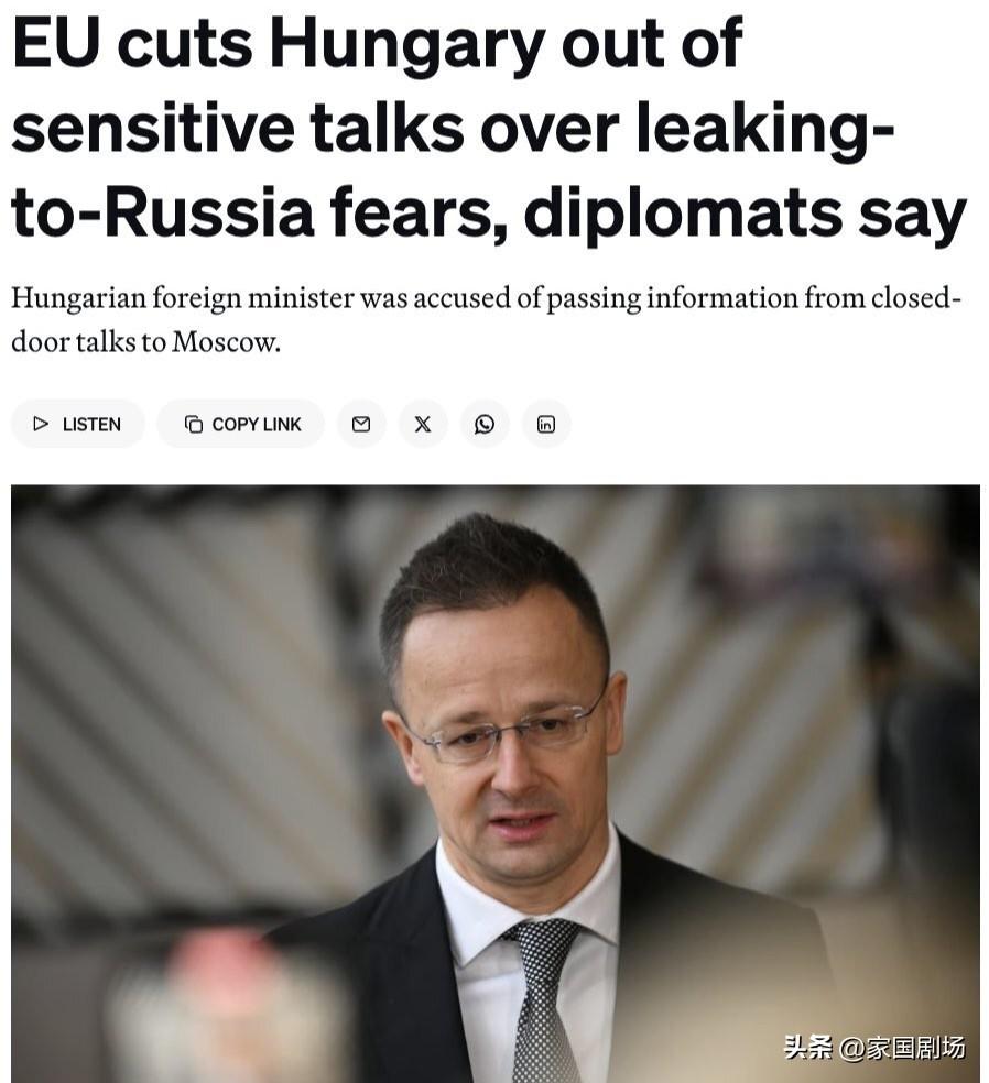 欧盟各国正日益将匈牙利排除在敏感议题的讨论之外,担心匈牙利可能向俄罗斯泄露信息。
