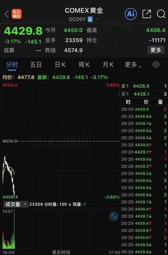 贵金属方面,COMEX黄金失守4430美元/盎司,日内跌超3%。白银跌幅近1%。