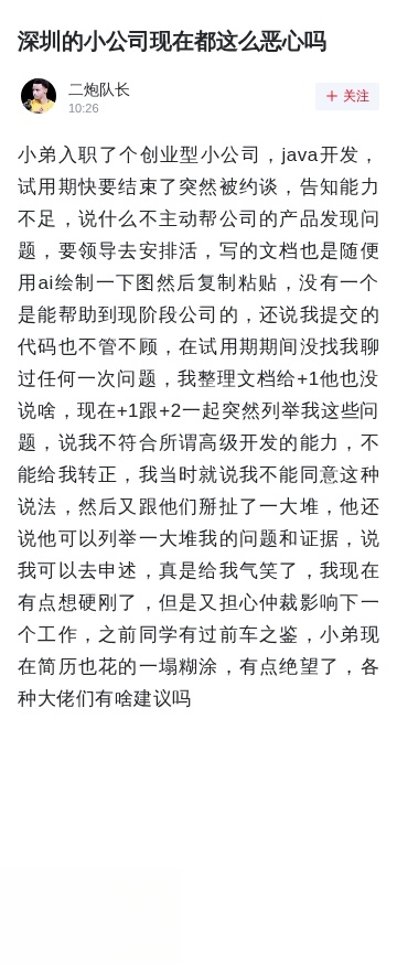深圳的小公司现在都这么恶心吗?我说:个别而已。