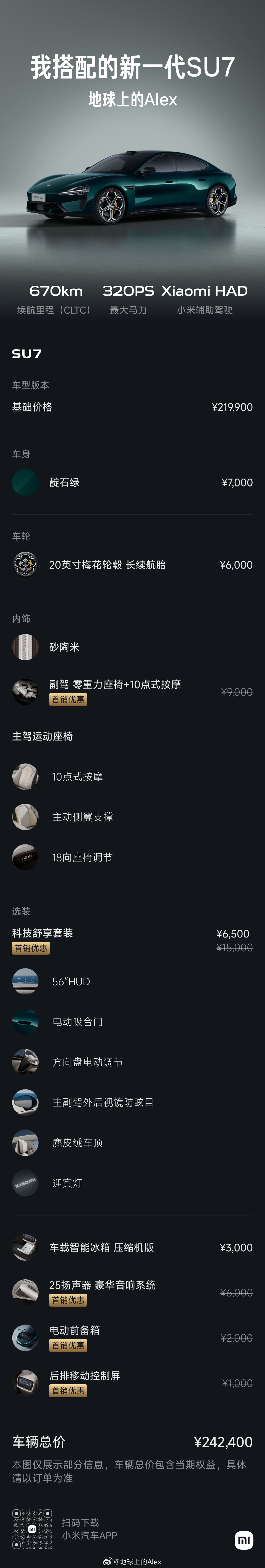 21.99万的标准版,在超级无敌升级完辅助驾驶之后,还给送了之前SU7首发才送的25扬声器主要是,之前SU7可没有6.5K就能够升级的HUD、电吸门、麂皮绒顶棚还有电动方向盘啊这性价比,直接嗷嗷就往上升了