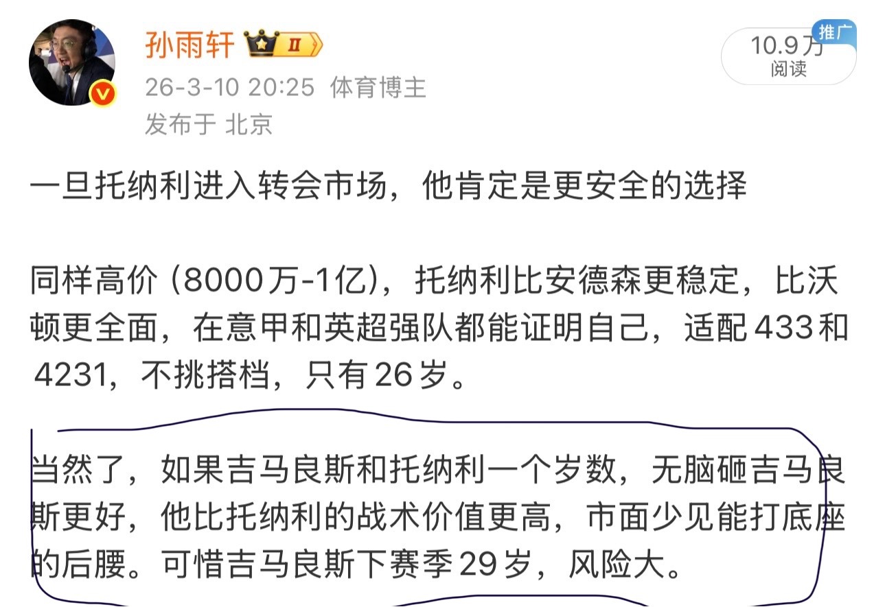 如果吉马良斯25岁,看都不用看托纳利,闭眼买吉马良斯就可以。