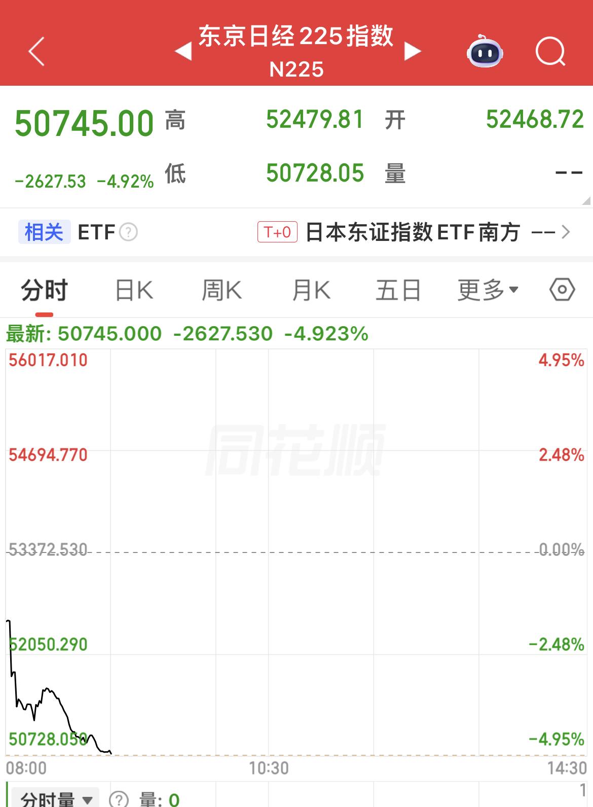 韩国综合指数目前下跌超6%! 东京日经225指数目前下跌近5%! 富时A50期指目前下跌超1%! ………………………………………… 沪指开盘低开20 -50点,毫无悬念! 低开低走?还是探底回升?看护盘力量吧! 我们按自己的节奏操作吧!