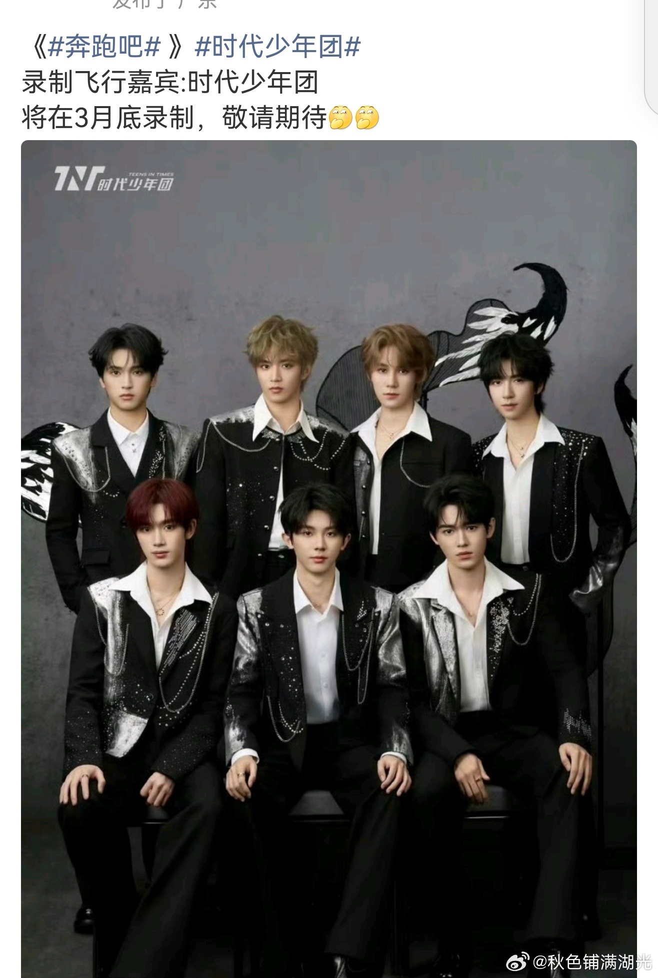 曝时代少年团将录制跑男曝时团将录制跑男 有博主爆料,3月底,也就是这几天,时代少