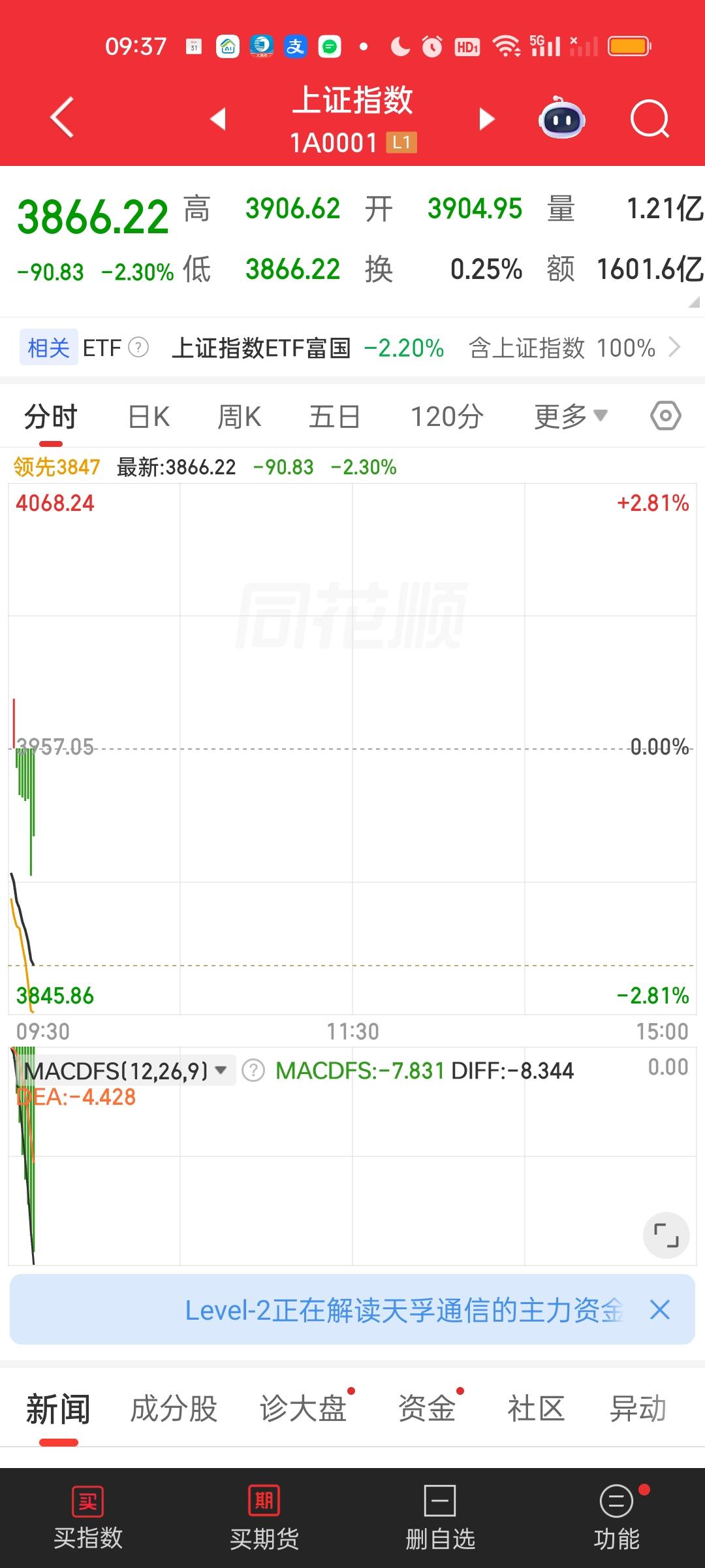 3866.22这个点位就是极度冰的点位,我们可以清楚的看到大盘在这里是放量的。也就是说肯定有人在这里割肉了。但这个割肉的金额依旧不能让主力机构满意,因为割肉的资金太少了,大家先别慌,再观察一下,大盘可能还要杀一次,杀到3840附近,再多杀最一些量出来。当然3866附近买进的已经是非常低的位置了,这个地方买进也是没有错的。因为谁也预测不了最低点。