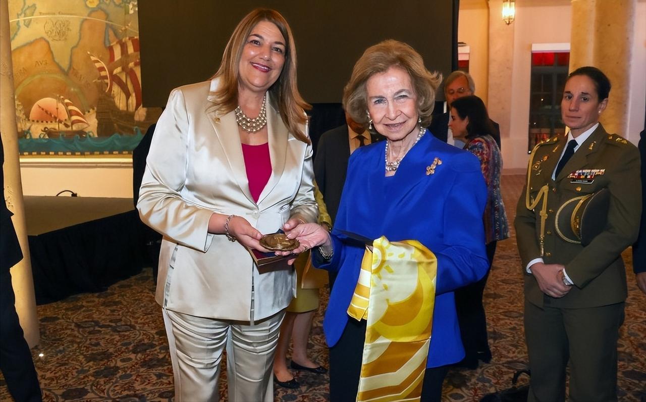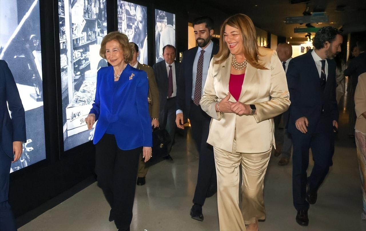3月20日,西班牙索菲亚王太后现身迈阿密戴德学院自由塔,参加在那里举行的“佛罗里达、古巴和加勒比地区在美国革命中的作用”学术项目发布会。 索菲亚王太后穿着宝蓝色小西装,搭配黑裤子,这是艾琳公主去世后,她第一次穿着如此靓丽的颜色。 搭配精致的胸针,佩戴珍珠项链,虽然索菲亚王太后已经年过八旬了,但是一出生就是公主,之后成为西班牙王后,作为天生的王室成员,索菲亚王太后真是将优雅和贵气写进了骨子里。