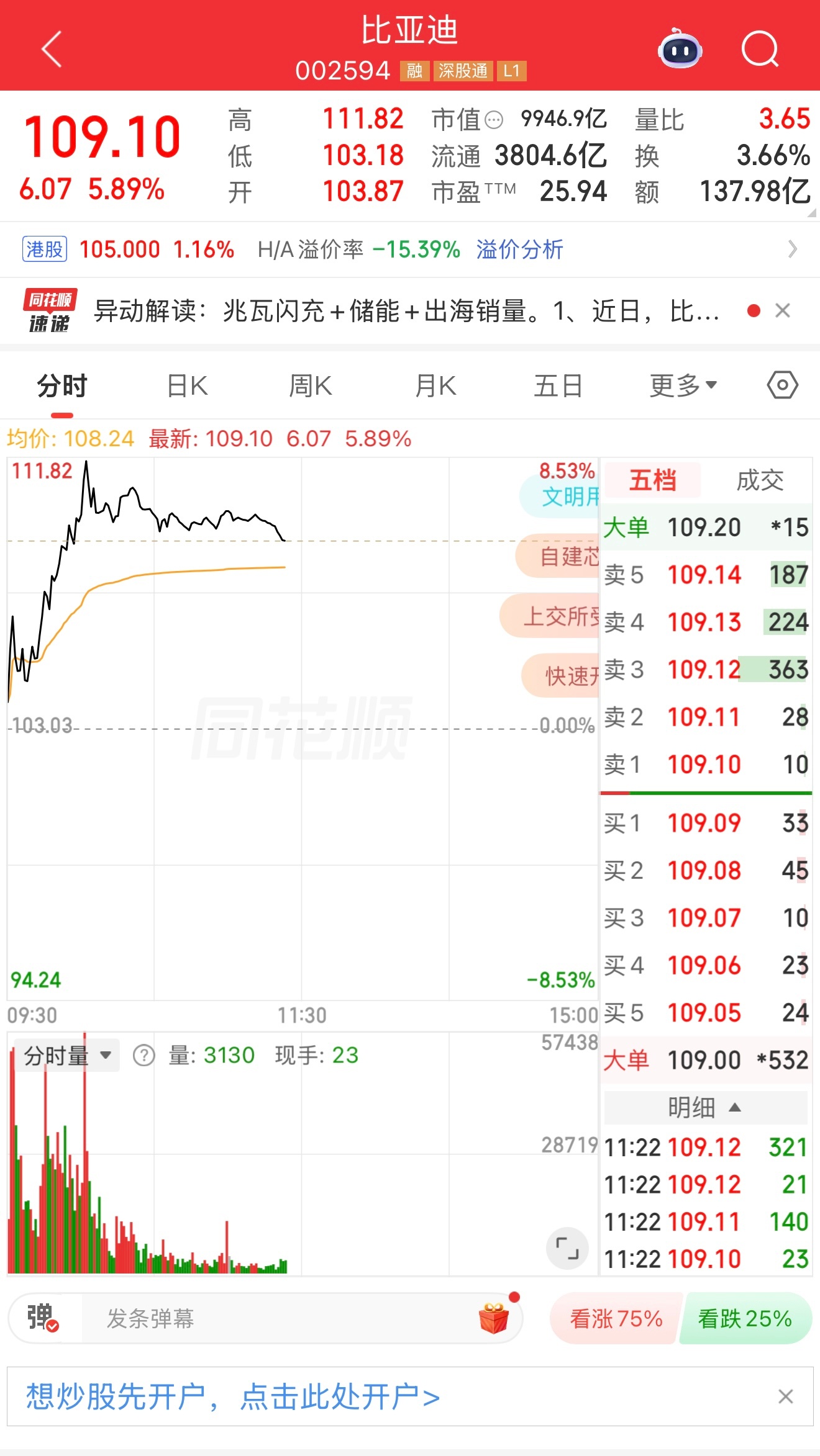 比亚迪A股大涨海外爆单了,油价飙升电车在海外突然间火起来了,今年一定是个出海大年,加油中国的车企们!