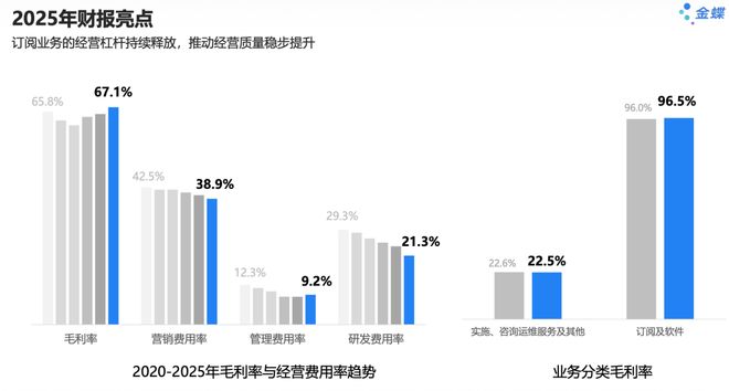 订阅软件毛利率96.5%,拉动整体毛利率至67.1%,而且这个数字还有上行空间,只要订阅占比继续提升,毛利率的改善就是确定性的。