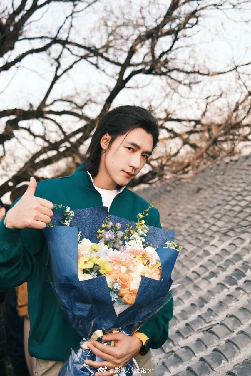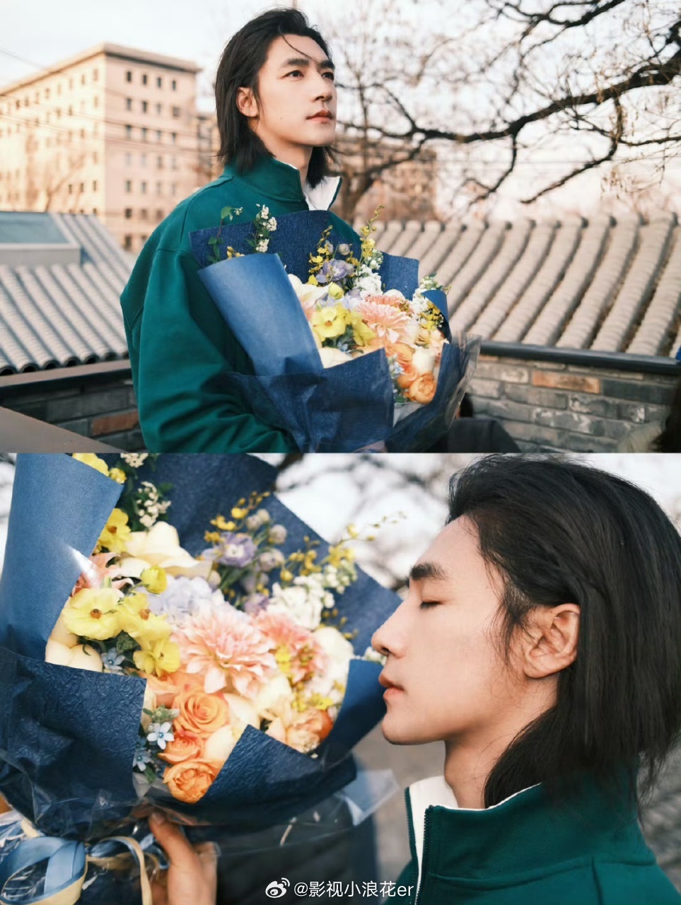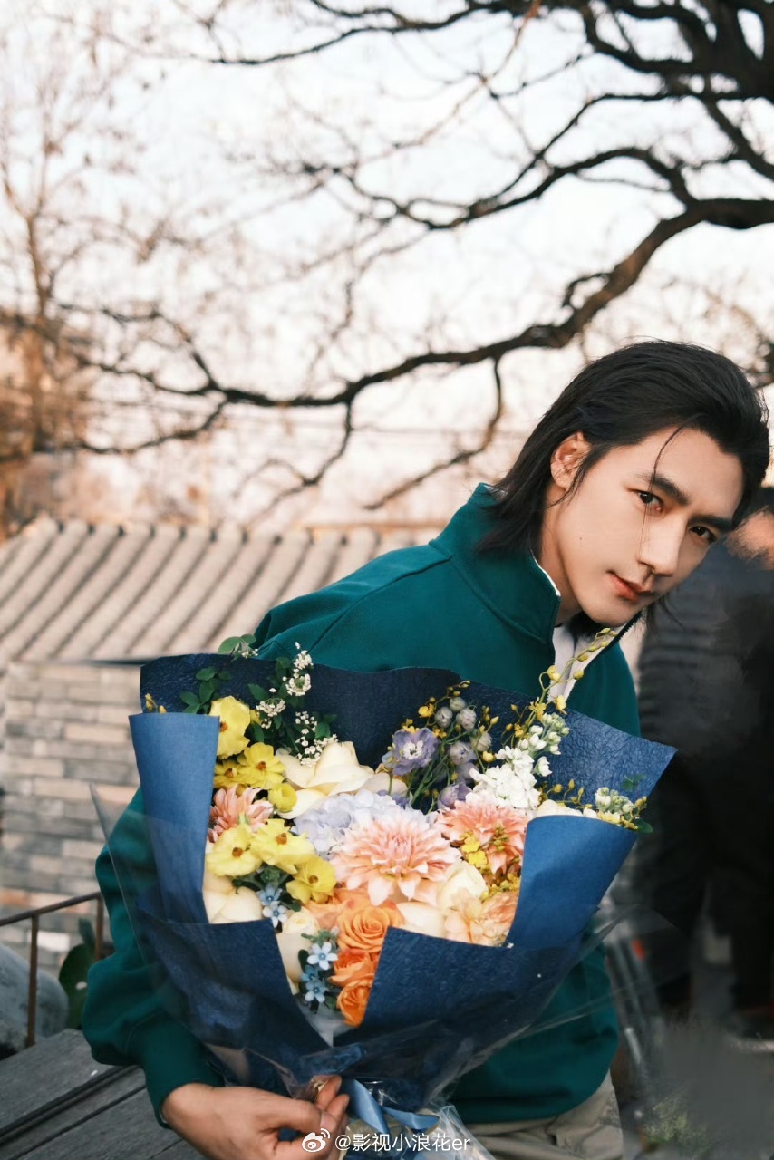 此沙张典和花花此沙张典捧花照 此沙张典抱着花的模样十分吸睛,这组捧花照氛围感拉满,阳光洒落其身,花瓣仿佛也带着光。他眼神里的温柔与自身的帅气相互碰撞,帅得让人移不开眼,颜值能打,帅哥与鲜花的组合,让人忍不住反复存图、驻足欣赏。