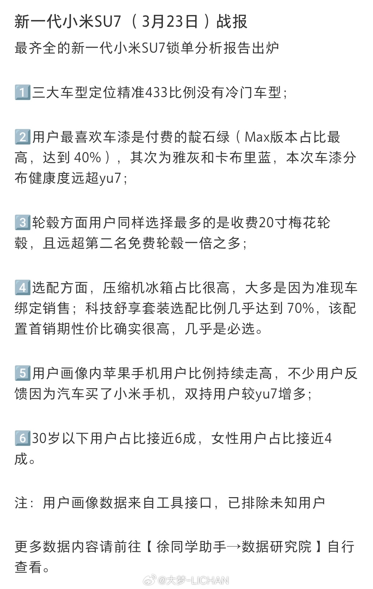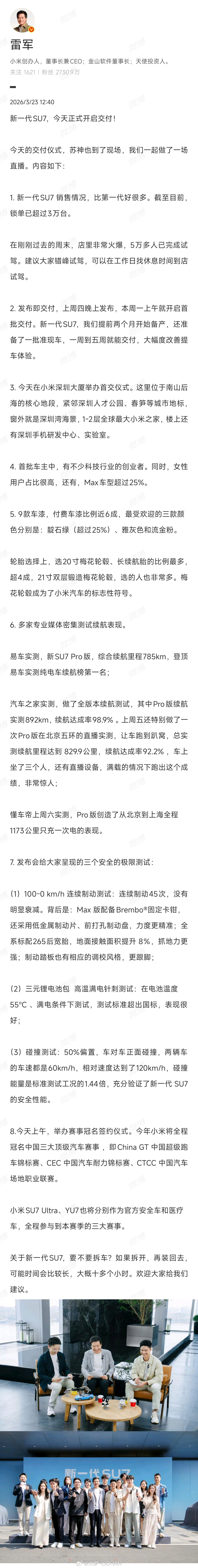 这一波情绪过后,或者等其它一些竞品发布,大家一对比就能知道新一代SU7产品力有多优秀了,尤其是首销这个成绩,含金量到底有多高。