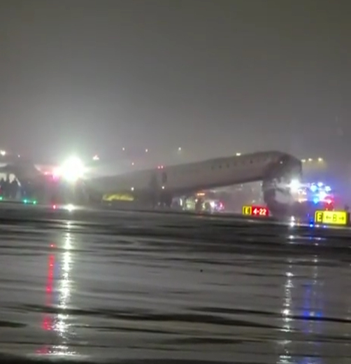 加拿大航空一架支线客机在美国纽约拉瓜迪亚机场与一辆消防车相撞
