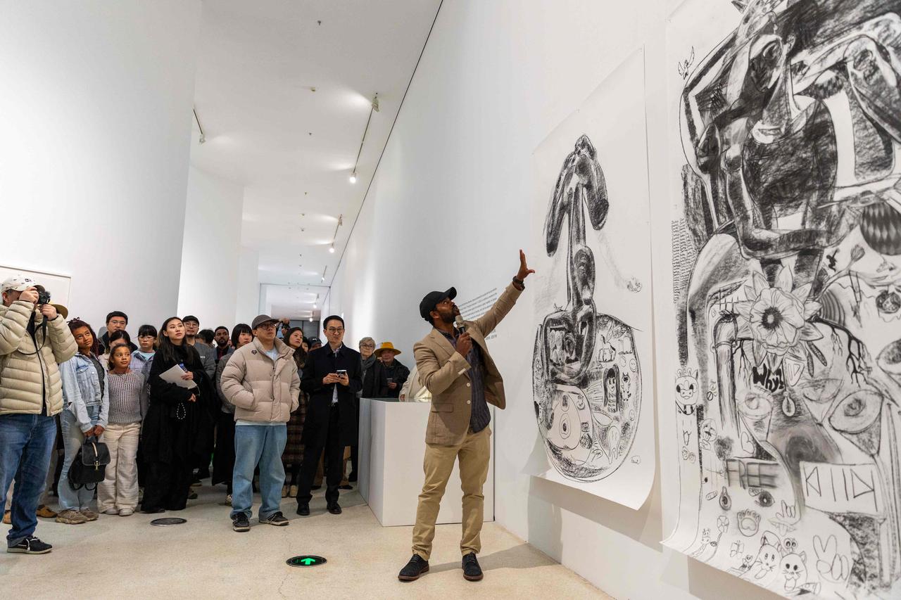 3月20日下午,两位来自不同文化背景,均在德国接受过系统的艺术教育,如今长居德国的艺术家,在北京红砖美术馆共同用他们的绘画向中国观众展示了他们回应世界的方式。来自北京的傅饶(现居德国德累斯顿)的绘画作品根植于东西方文化土壤,有着东方绘画的底色与西方绘画的质感,以极致的色彩语言探索着人类与世界、物质与精神、生与死之间的内在关联。 而来自埃塞俄比亚的特斯法耶∙乌尔盖萨(Tesfaye Urgessa, 现居德国尼尔廷根与埃塞俄比亚亚的斯亚贝巴)则以极具张力的人物形象,直面全球冲突阴影下的流离与群族矛盾等历史现实,同时彰显个体韧性与尊严。此次双个展得到了德国驻华大使馆的大力支持。正如大使馆公使葛若海 (Dr. Stephan Grabherr)所言,他们代表了今日德国多元共生的社会图景。本次展览将持续至6月21日。