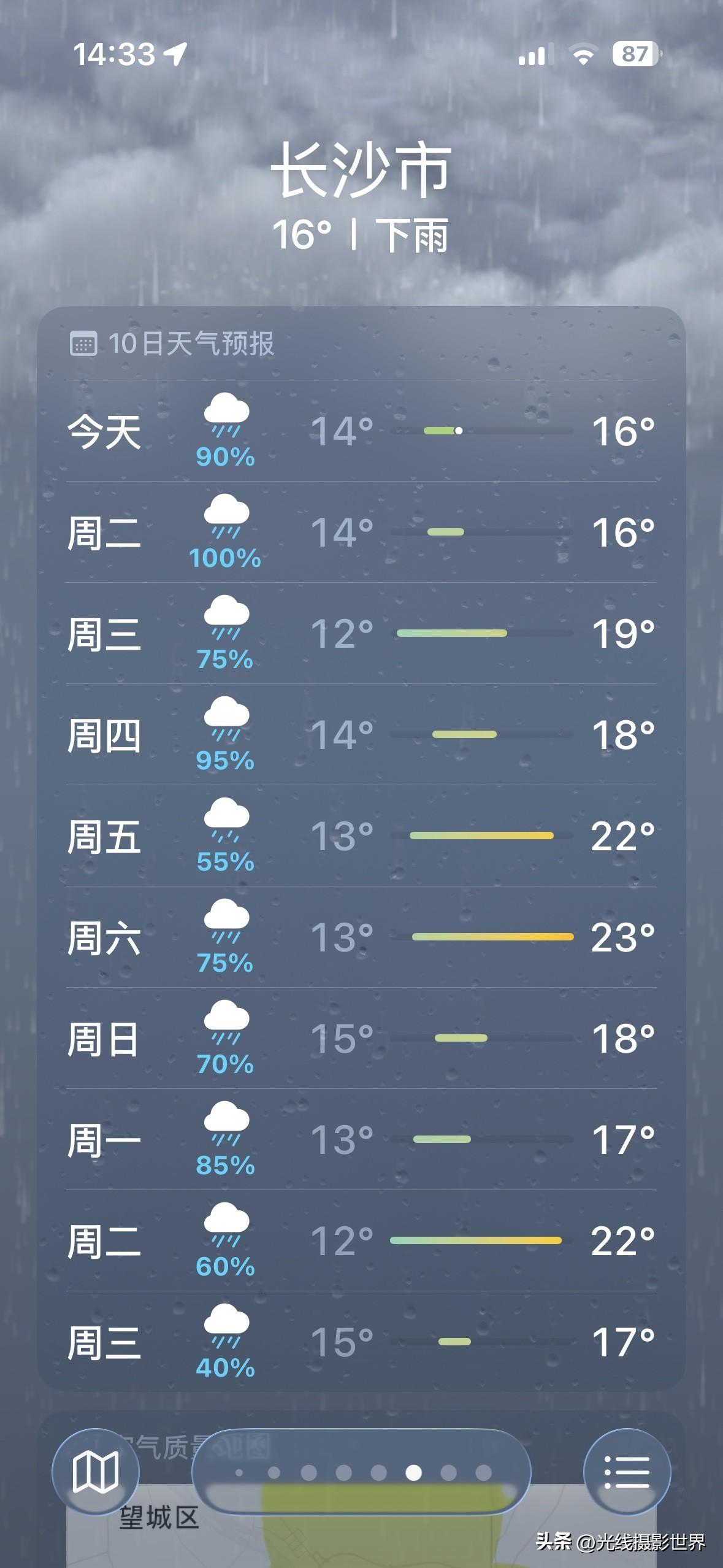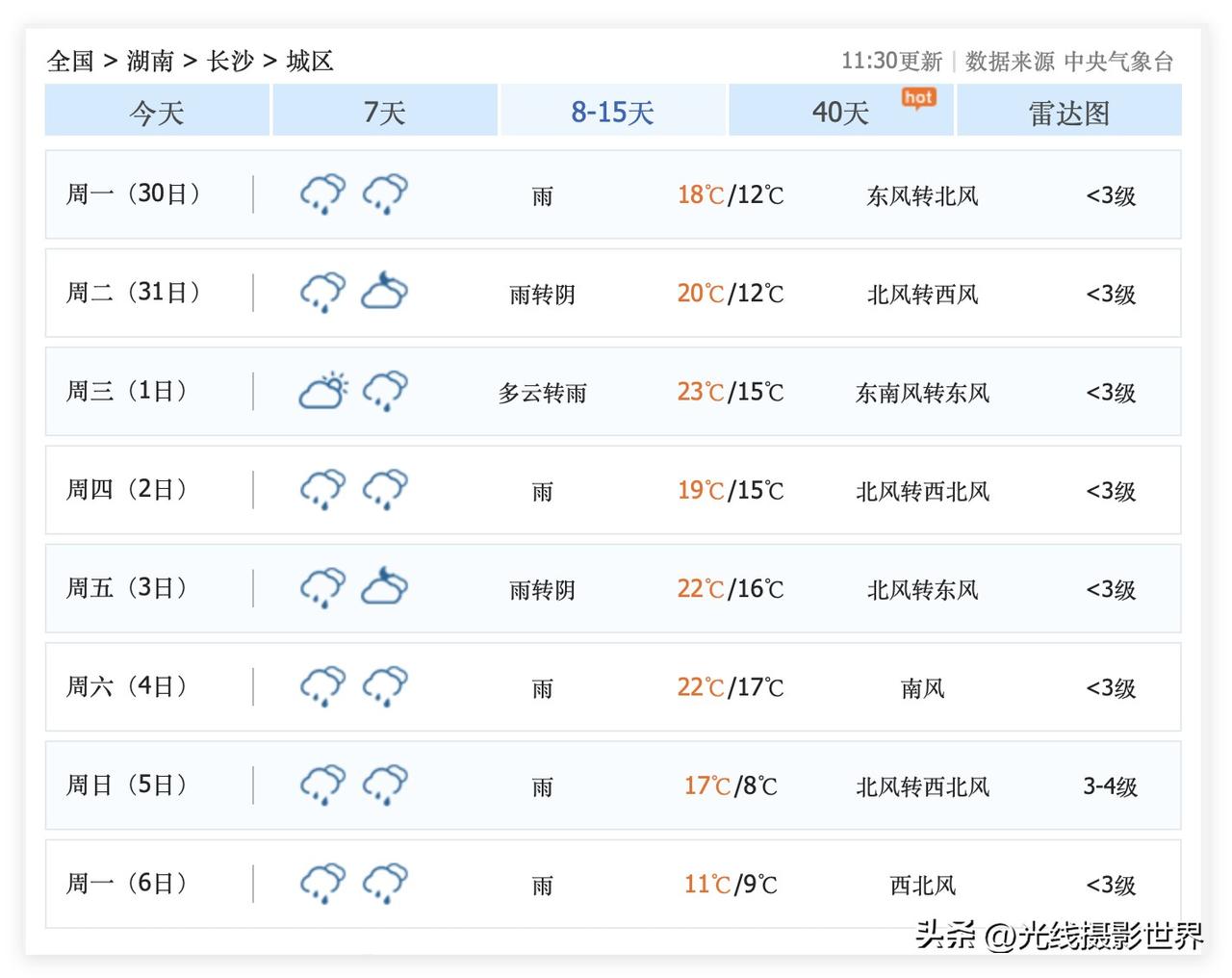 超级大喜讯!这周,湖南省长沙市,终于要出太阳啦!虽然3月23日到4月6日的长沙市,大多数日子可能都会下雨……但是,中央气象台的最新天气预报显示,3月26日和27日,星期四和星期五,长沙市可能会出太阳……长沙人,准备好了晒太阳吗?!准备好了洗衣服吗?!晒床单,洗被单……长沙人,最近被阴雨天折磨的没脾气了吧?! 嗯嗯,这周,隔壁的武汉市也经常出太阳,武汉樱花迎来最盛大的花期,武汉大学,东湖樱花园,武汉植物园……长沙的小伙伴们,也可以去武汉赏花哦! 3月27日,长沙多云…… 3月28日,星期六,长沙小雨。 3月29日,星期天,长沙中雨转大雨。 …… 好吧,这周末,长沙市依旧泡在雨水里面! 所以,有条件的长沙人,3月27日星期五,请假出去赏花吧……如果是幼儿园和小学,其实,请假一天也没啥……其实,即便是初三和高三,放假一天去晒晒太阳赏花,也有助于考出好成绩的啊!