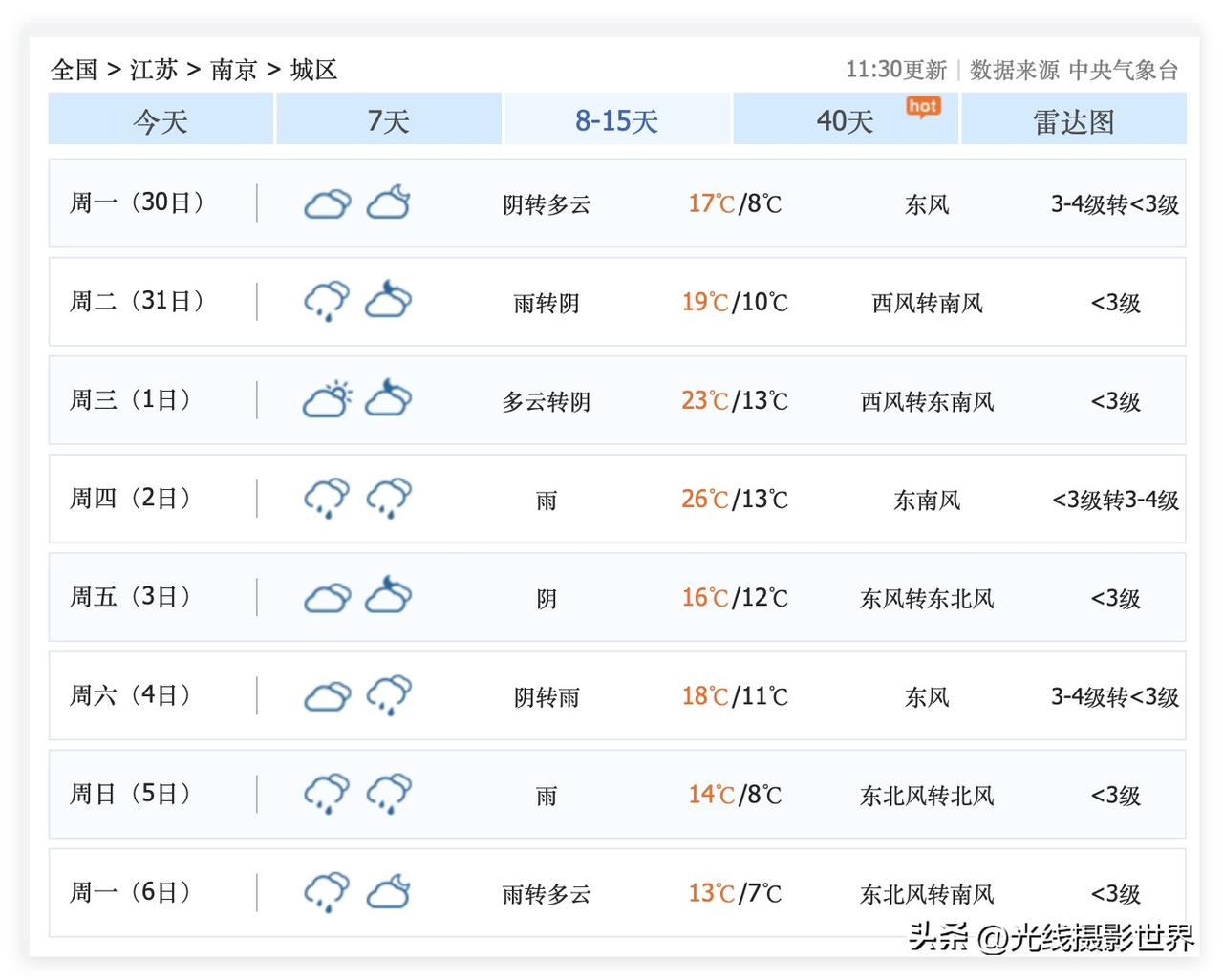 2个好消息,1个坏消息!江苏省南京市的鸡鸣寺樱花盛开的这周,3月25日,星期三,南京多云,要出太阳啦……大家一定要珍惜樱花盛花期,3月25日,鸡鸣寺,玄武湖,中山植物园…… 3月27日,星期五,南京晴天…… 但是,中央气象台的最新南京天气预报显示,这周末,南京阴天,南京小雨! 3月28日,星期六,南京阴天。 3月29日,星期天,南京小雨。 …… 好吧……就这样吧…… 再接下来,3月30日以后的天气预报,不用看了,看了也没用……2026年春季赏花的旺季高潮,即将结束……清明时节雨纷纷……清明节后就是夏天……没啥好看的了。